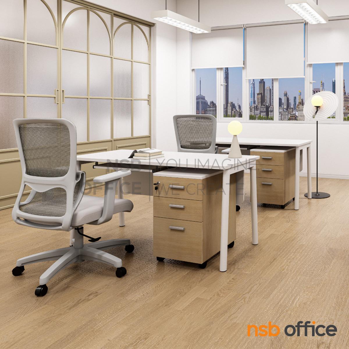 : โต๊ะทำงาน รุ่น Alvessa (อัลเวสซา) ขนาด 150W cm. บังตาไม้ ขาเหล็ก พร้อมตู้ลิ้นชักล้อเลื่อน