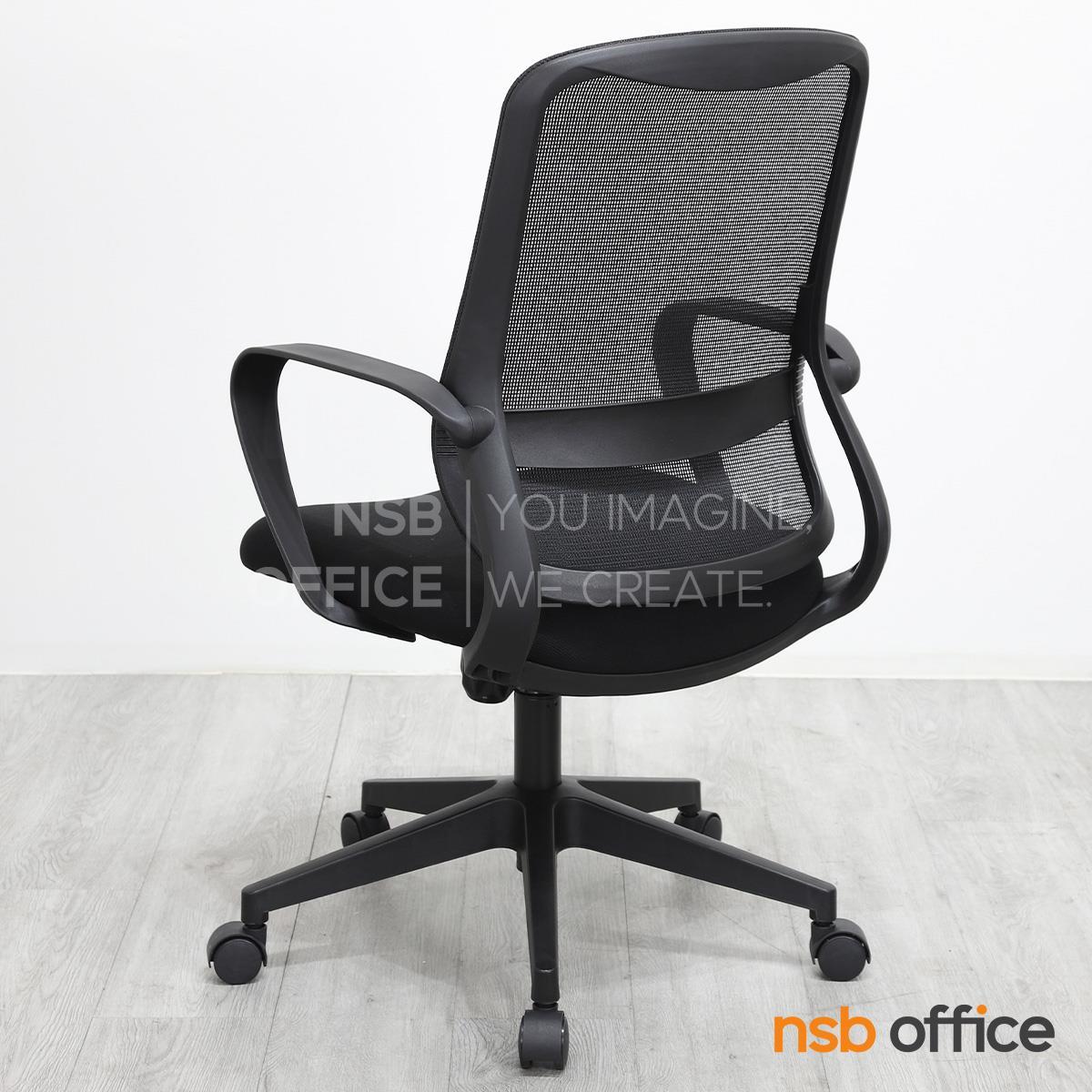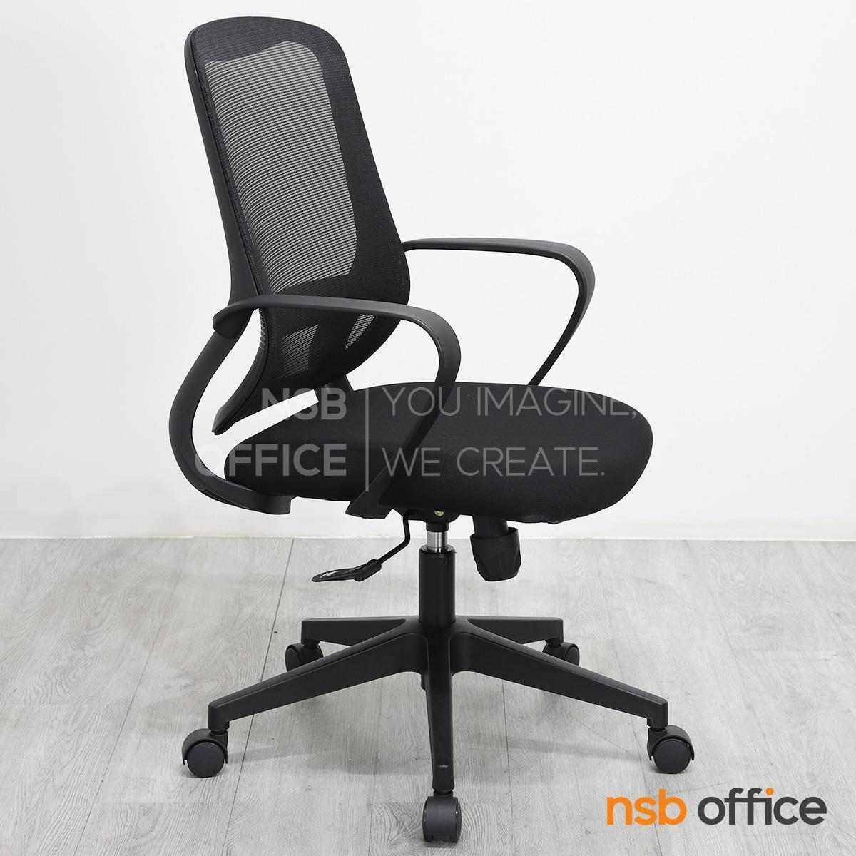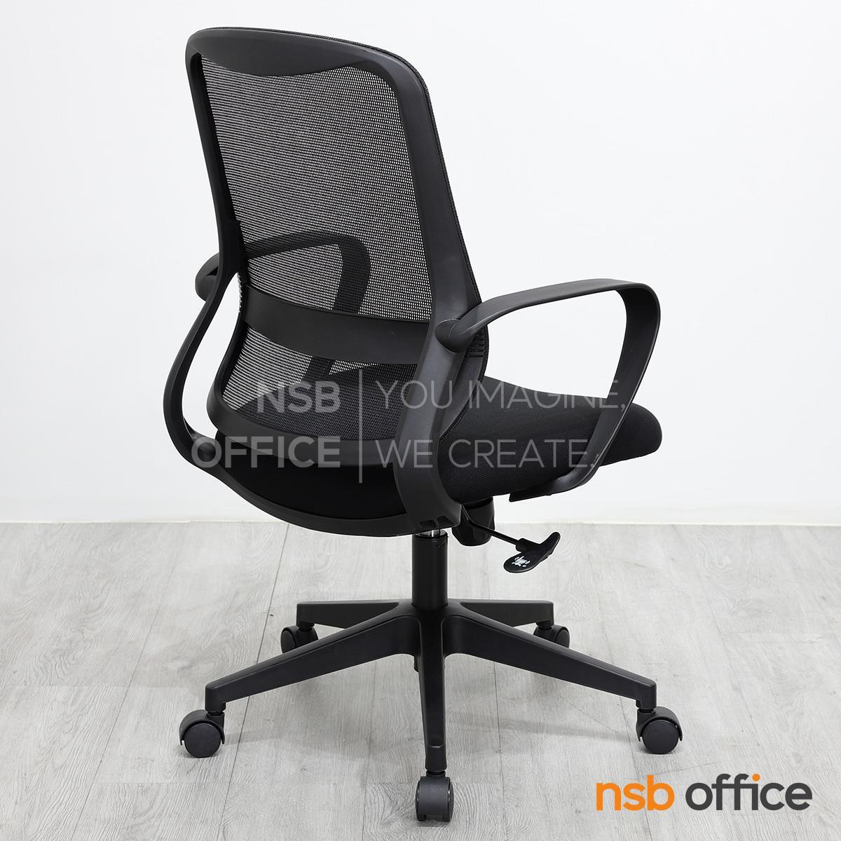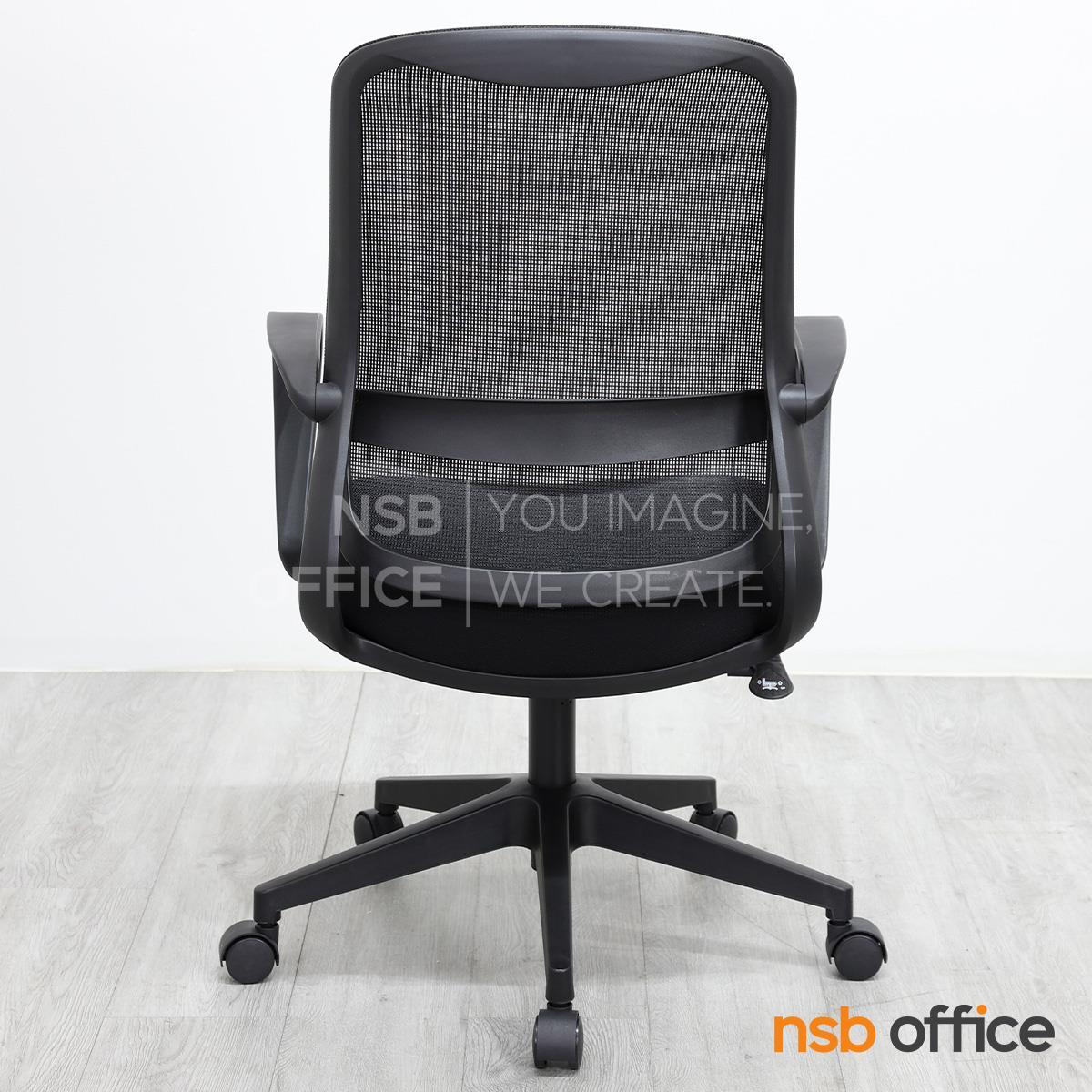 เก้าอี้พนักพิงผลิตจากผ้าตาข่าย (Mesh) คุณสมบัติระบายอากาศได้ดี ลดความร้อนสะสมขณะใช้งาน พร้อมโครงสร้างรองรับแผ่นหลังเพื่อความสบายและรองรับสรีระในการนั่งทำงานระยะยาว