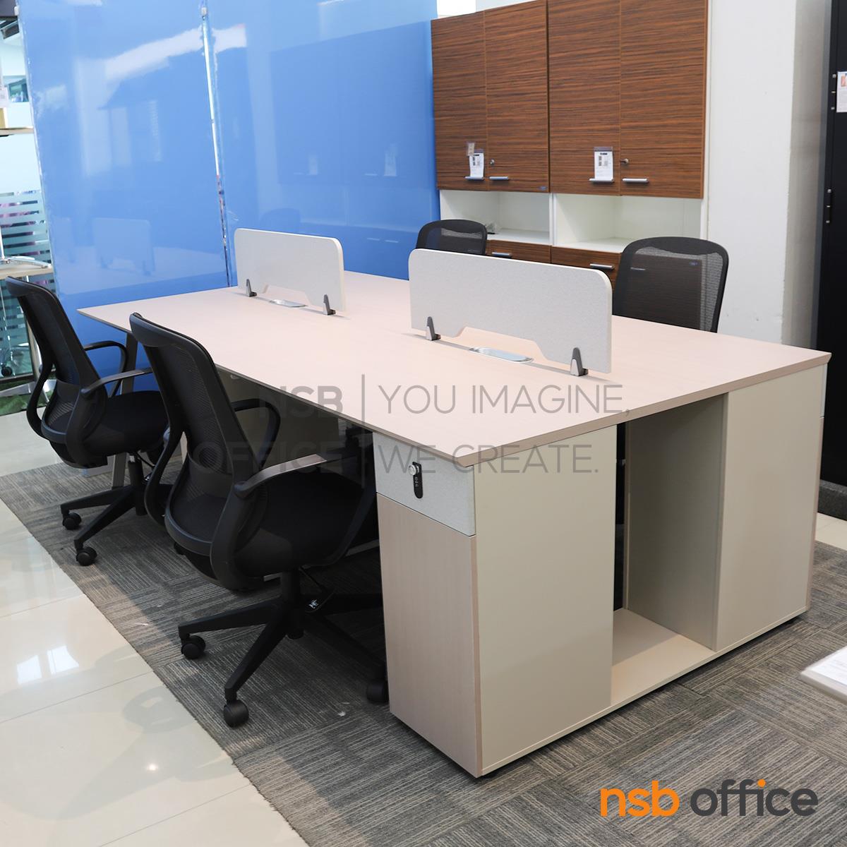 : โต๊ะทำงานกลุ่ม 4 ที่นั่ง เสริมมินิสกรีนและตู้เก็บของ รุ่น Utopia (ยูโทเปีย) พร้อมเก้าอี้สำนักงานหลังเน็ต