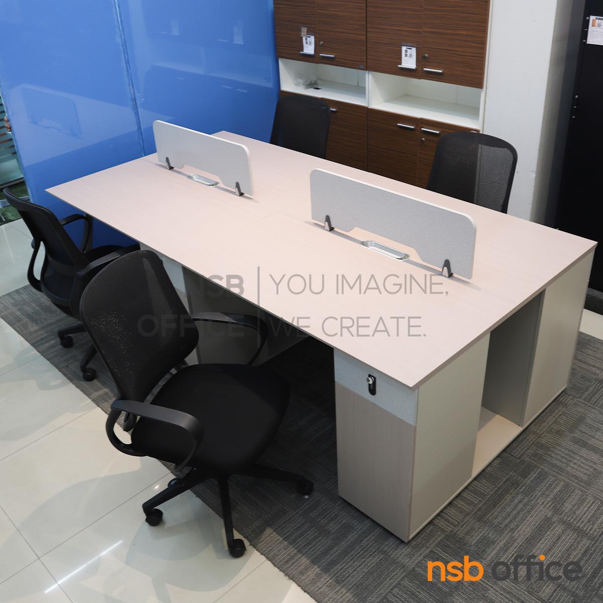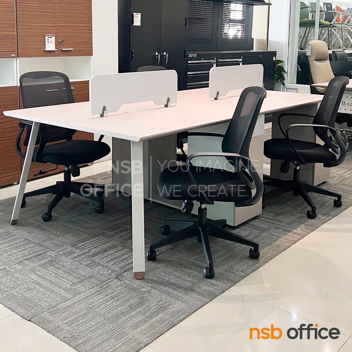 A27A105: โต๊ะทำงานกลุ่ม 4 ที่นั่ง เสริมมินิสกรีนและตู้เก็บของ รุ่น Utopia (ยูโทเปีย) พร้อมเก้าอี้สำนักงานหลังเน็ต