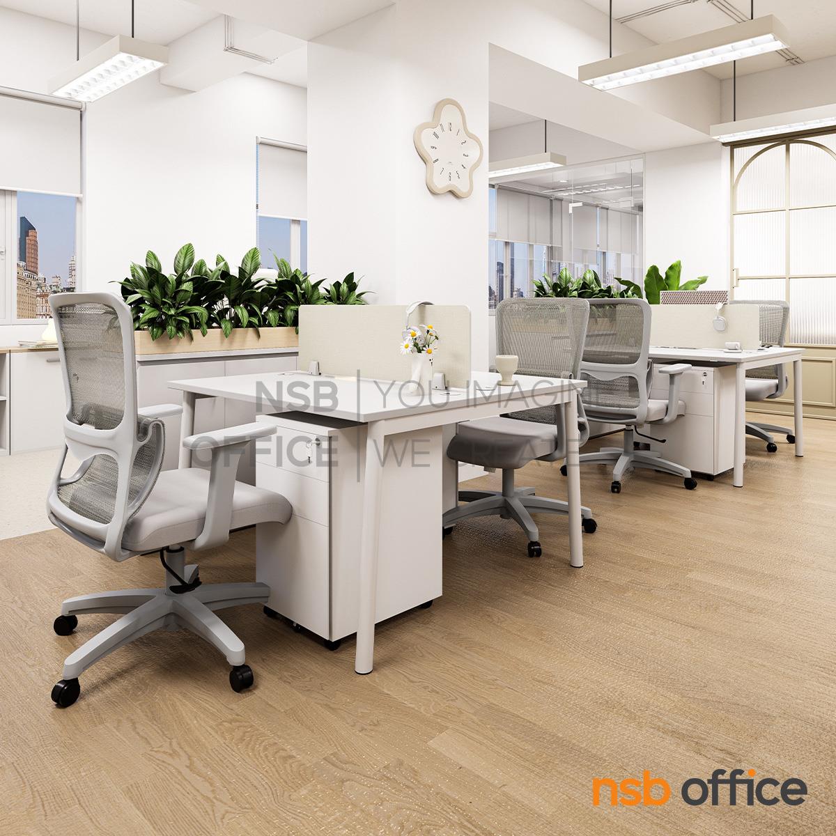 A27A106: โต๊ะทำงานกลุ่ม 2 ที่นั่ง รุ่น Antus (แอนทัส) ขนาด 120W cm. พร้อมมินิสกรีนและตู้ลิ้นชักเหล็กล้อเลื่อน ขาเหล็ก