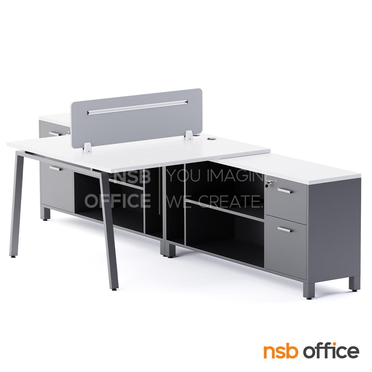 A27A120: ชุดโต๊ะทำงานกลุ่ม 2 ที่นั่ง รุ่น Isaline II (อิสสลีน 2) พร้อมมินิสกรีนหุ้มผ้า และตู้ข้างเก็บของ