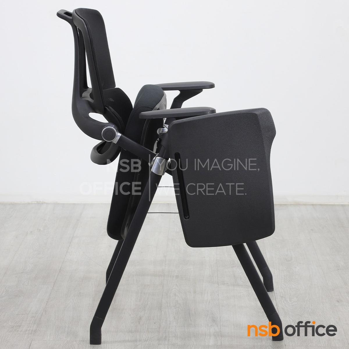 เท้าแขนแผ่นเลคเชอร์ของเก้าอี้อยู่ทางด้านขวา ออกแบบมาเพื่อการใช้งานสำหรับคนถนัดมือขวา