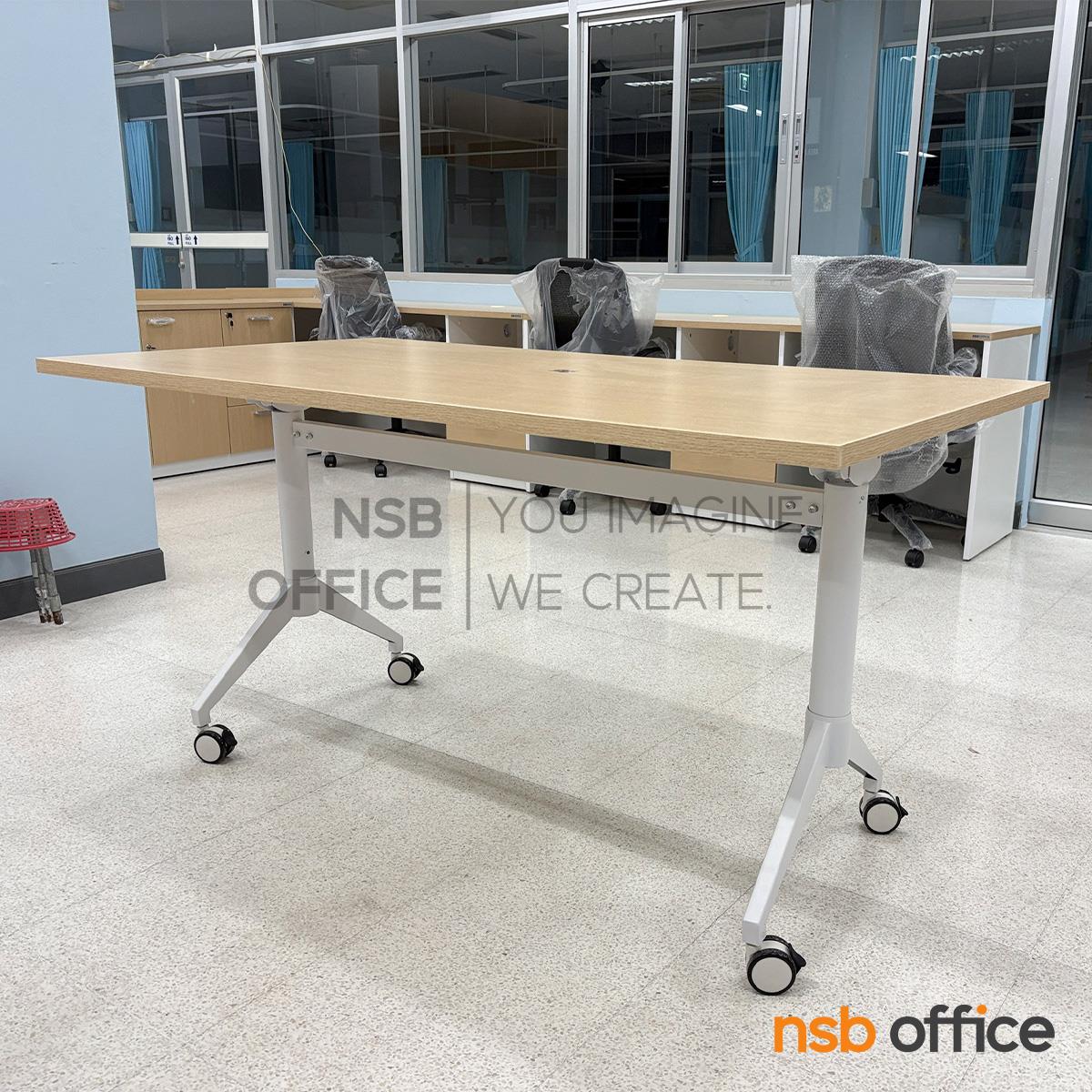 : โต๊ะประชุมพับเก็บได้ล้อเลื่อน รุ่น Fontina II (ฟอนตินา 2) ขนาด 180W cm. โครงขาเหล็กสีขาว ล้อล็อกได้
