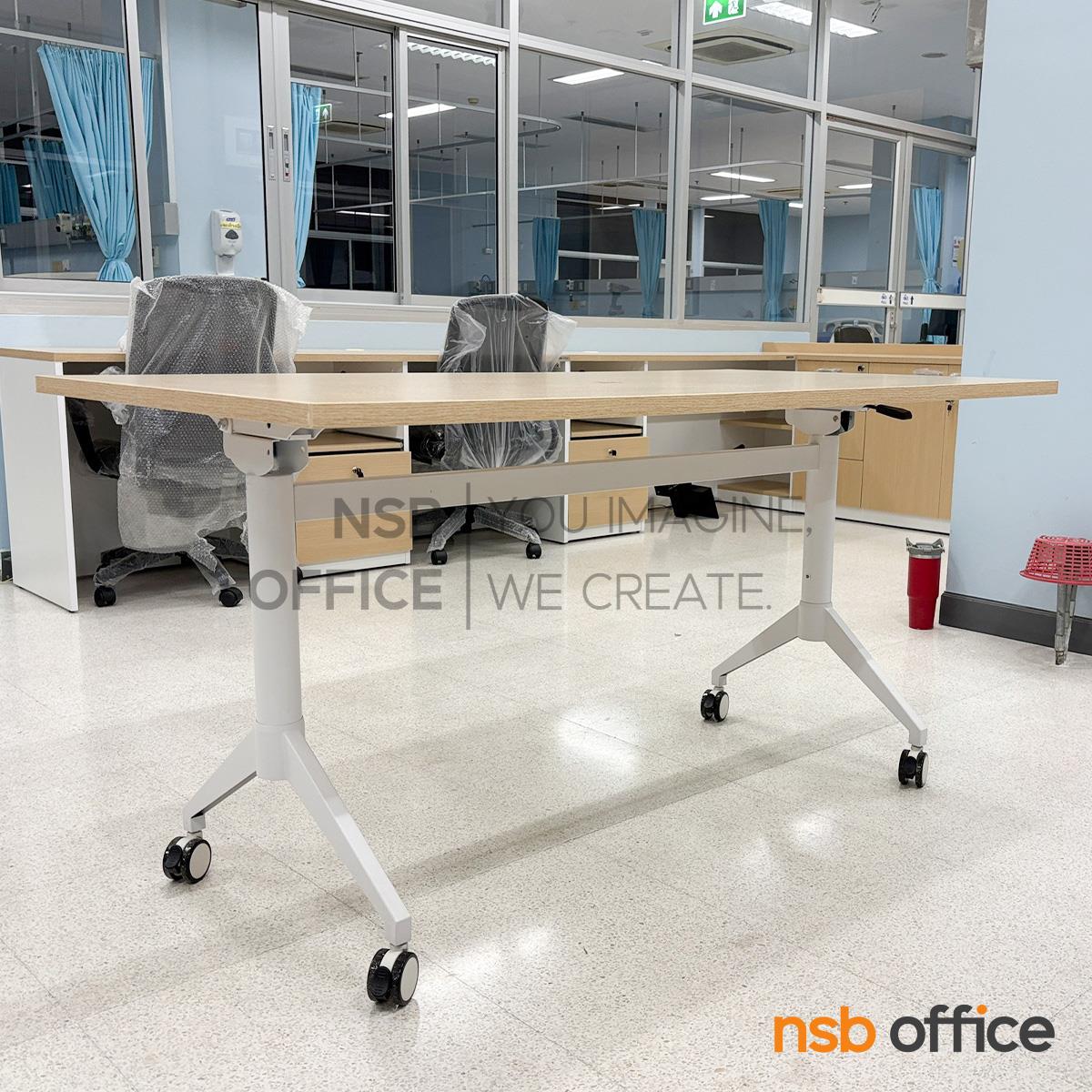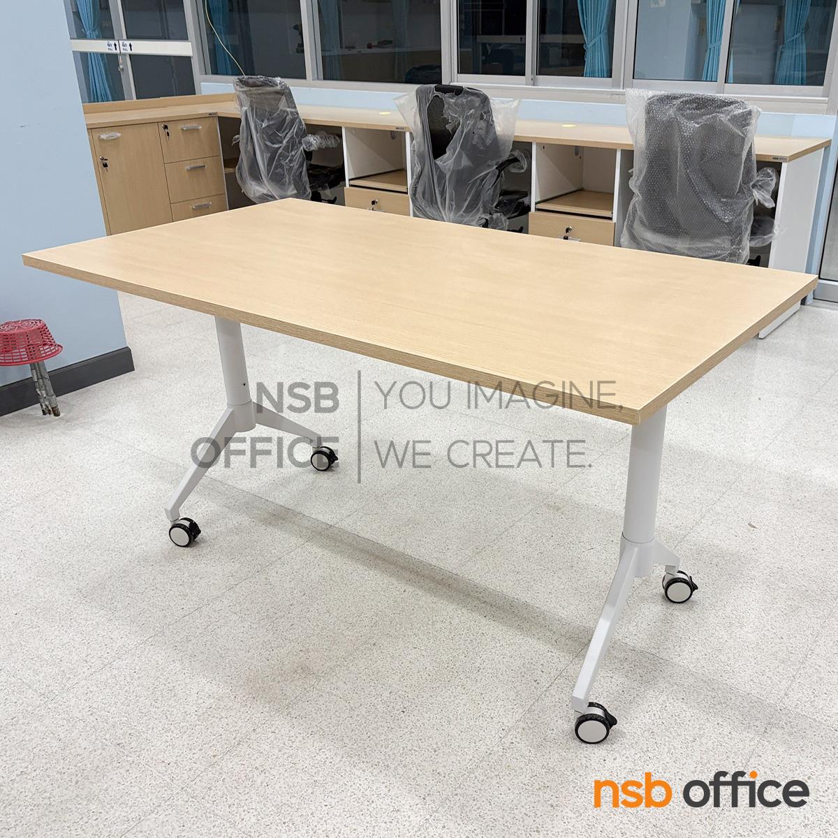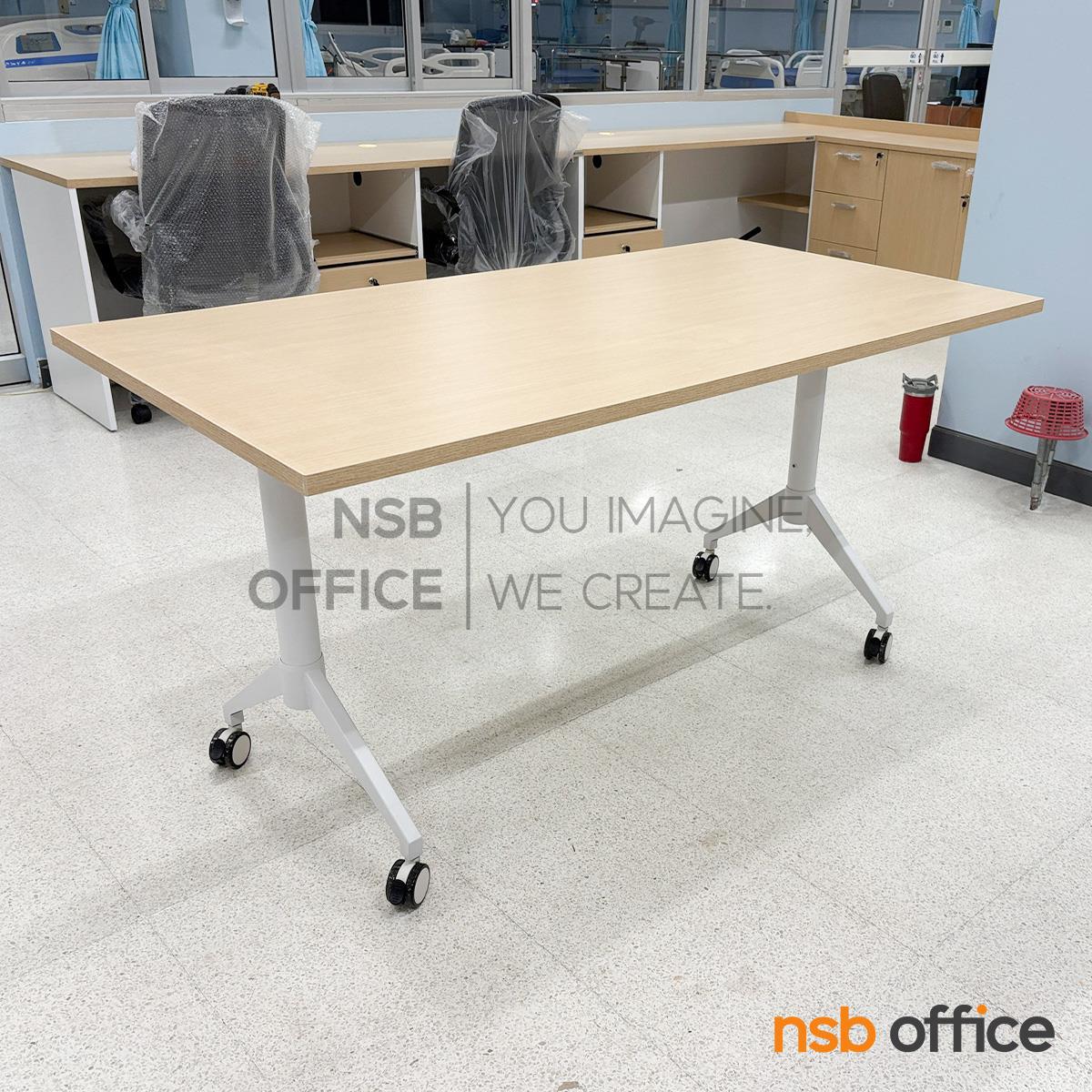 : โต๊ะประชุมพับเก็บได้ล้อเลื่อน รุ่น Fontina II (ฟอนตินา 2) ขนาด 150W cm. โครงขาเหล็กสีขาว ล้อล็อกได้