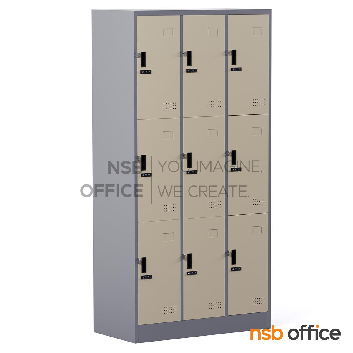 E14A012: ตู้ล็อกเกอร์เหล็กสูง 9 ประตู รุ่น Elysium (เอลิเซียม) ขนาด 91.4W*45.7D*183H cm. กุญแจล็อกรหัส