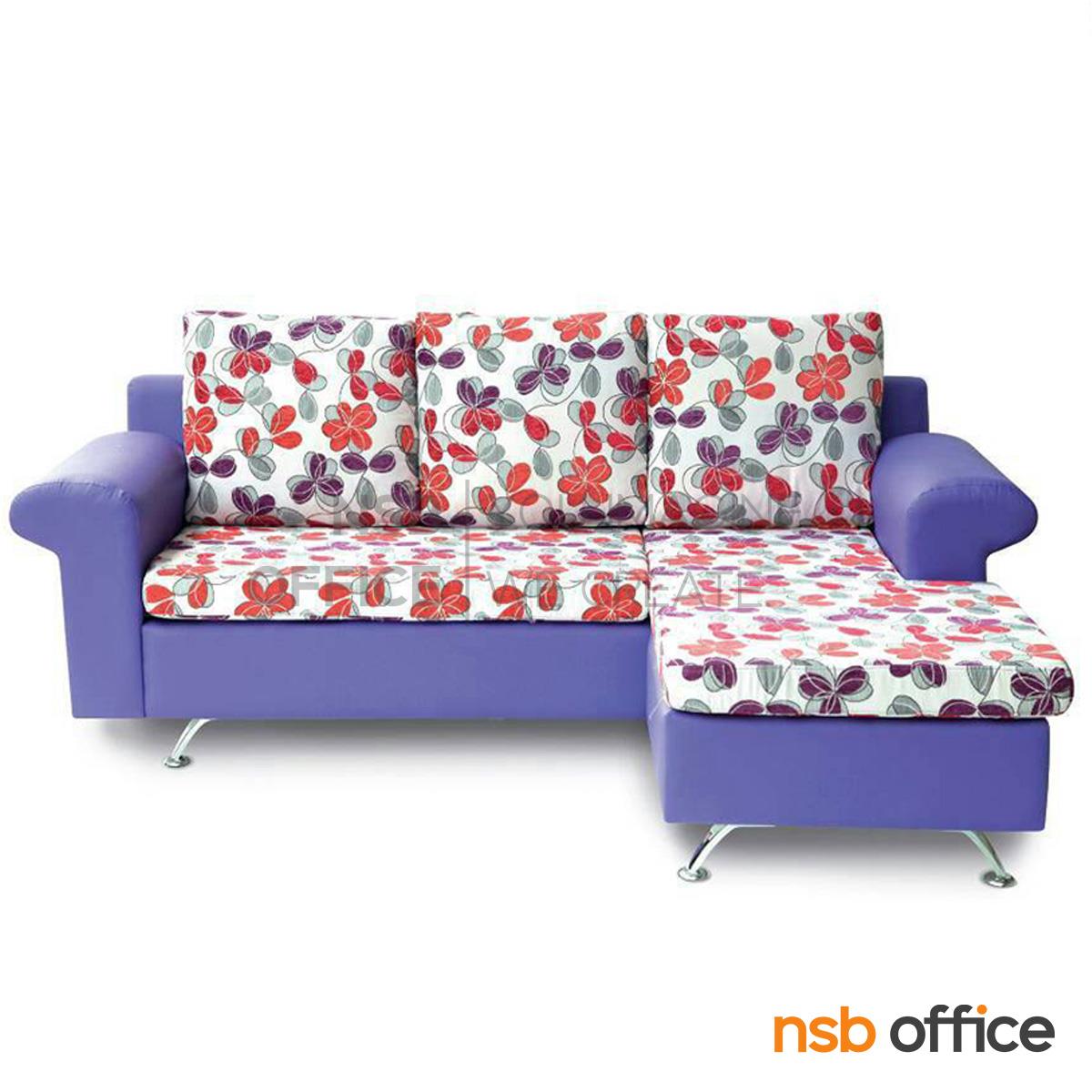 : โซฟาตัวแอล รุ่น DL28 หุ้มผ้า ขนาด 215W cm. ฐานเป็นขาเหล็กชุบโครเมี่ยม
