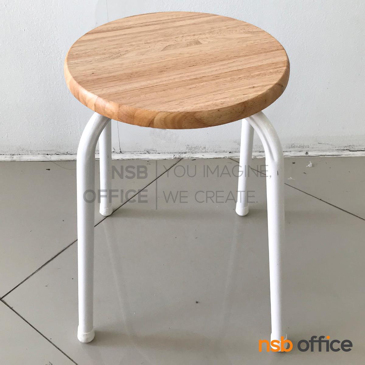 ที่นั่งไม้ยางพารา แข็งแรง / โครงขาแป๊ปกลมหนา 0.7 mm สีขาว