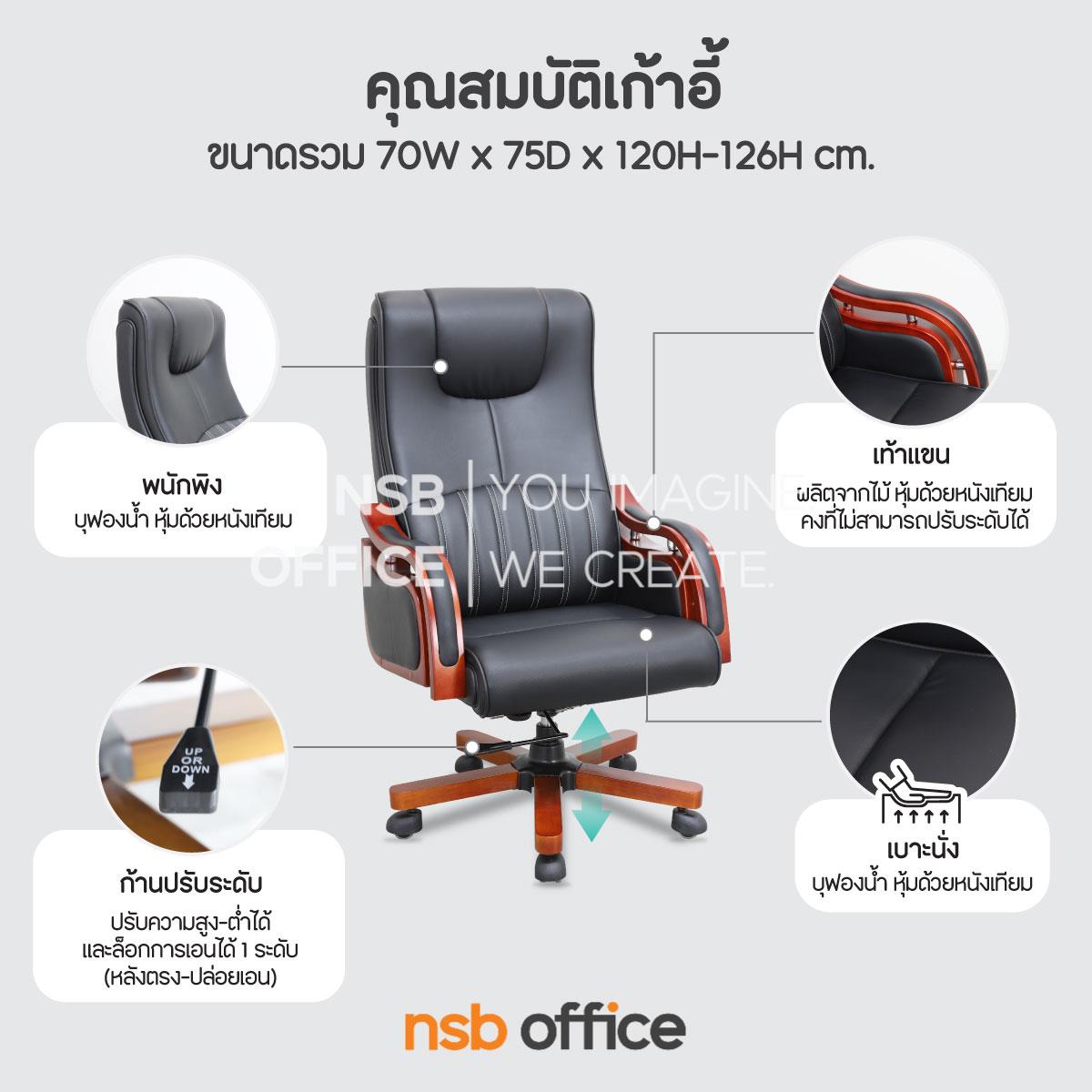 : เก้าอี้ผู้บริหารหนัง PU รุ่น Onika (โอนิกา) โช๊คแก๊ส ขาไม้