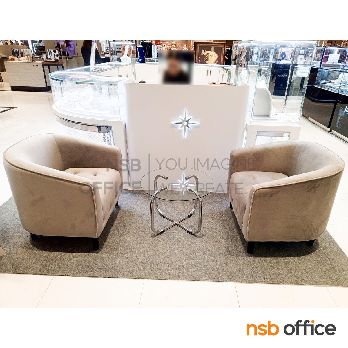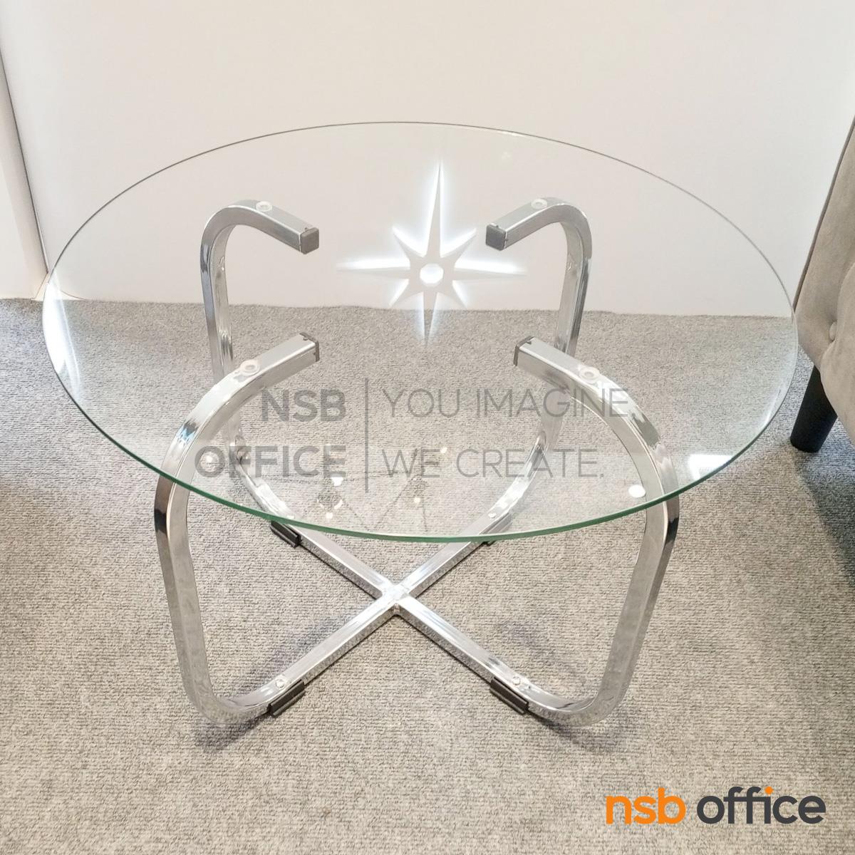 : โต๊ะกลางกระจกกลมใส รุ่น KT-APPLE ขนาด 60W cm. โครงเหล็กชุปโครเมี่ยม