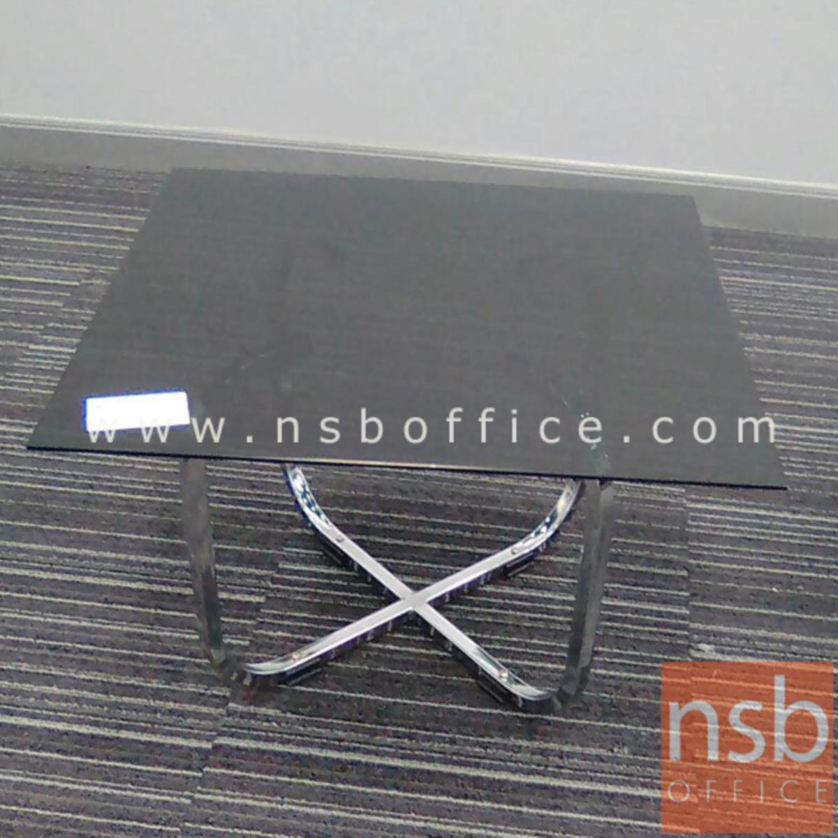: โต๊ะกลางกระจกสีชา รุ่น KT-CAN ขนาด 60W cm. โครงขาเหล็กชุบโครเมี่ยม