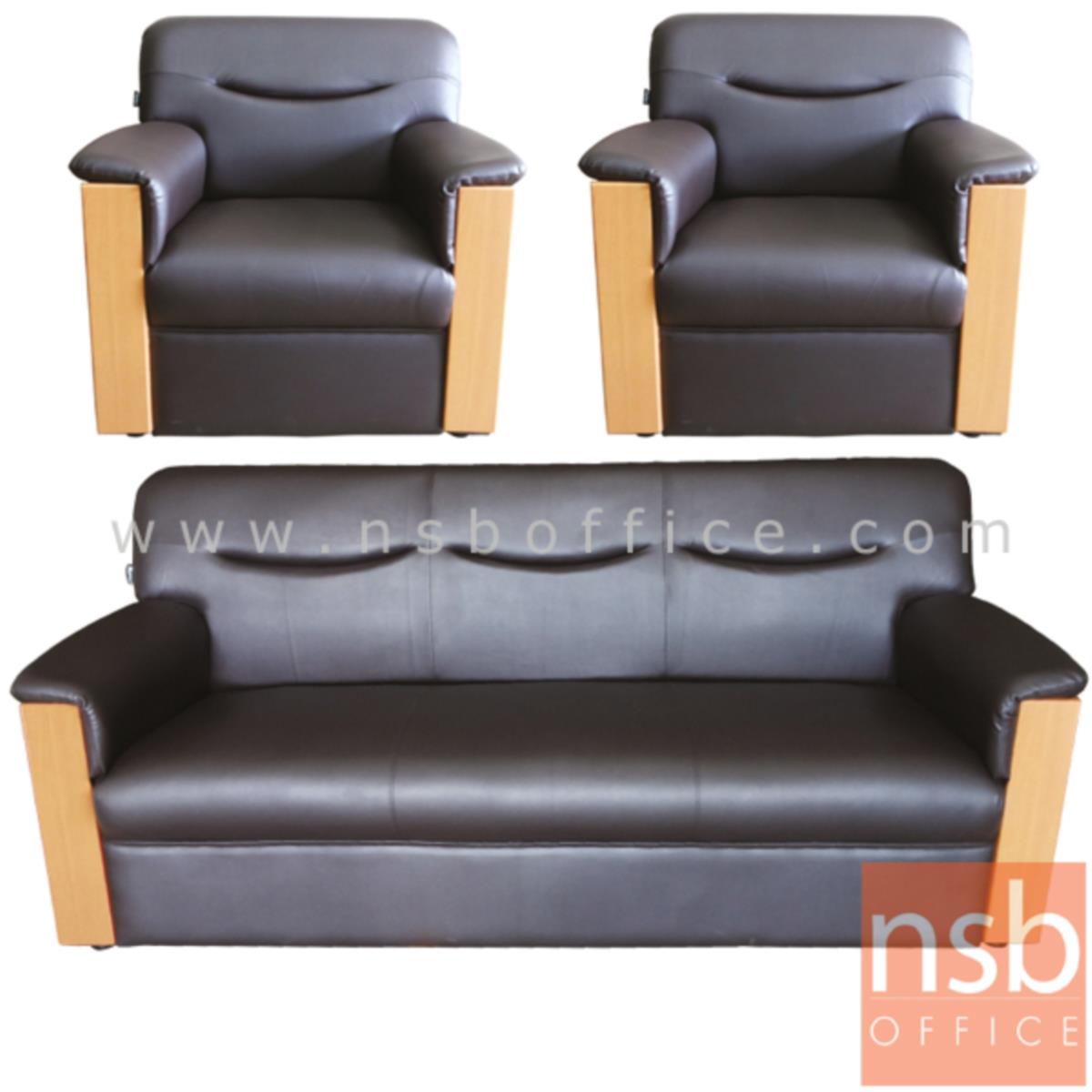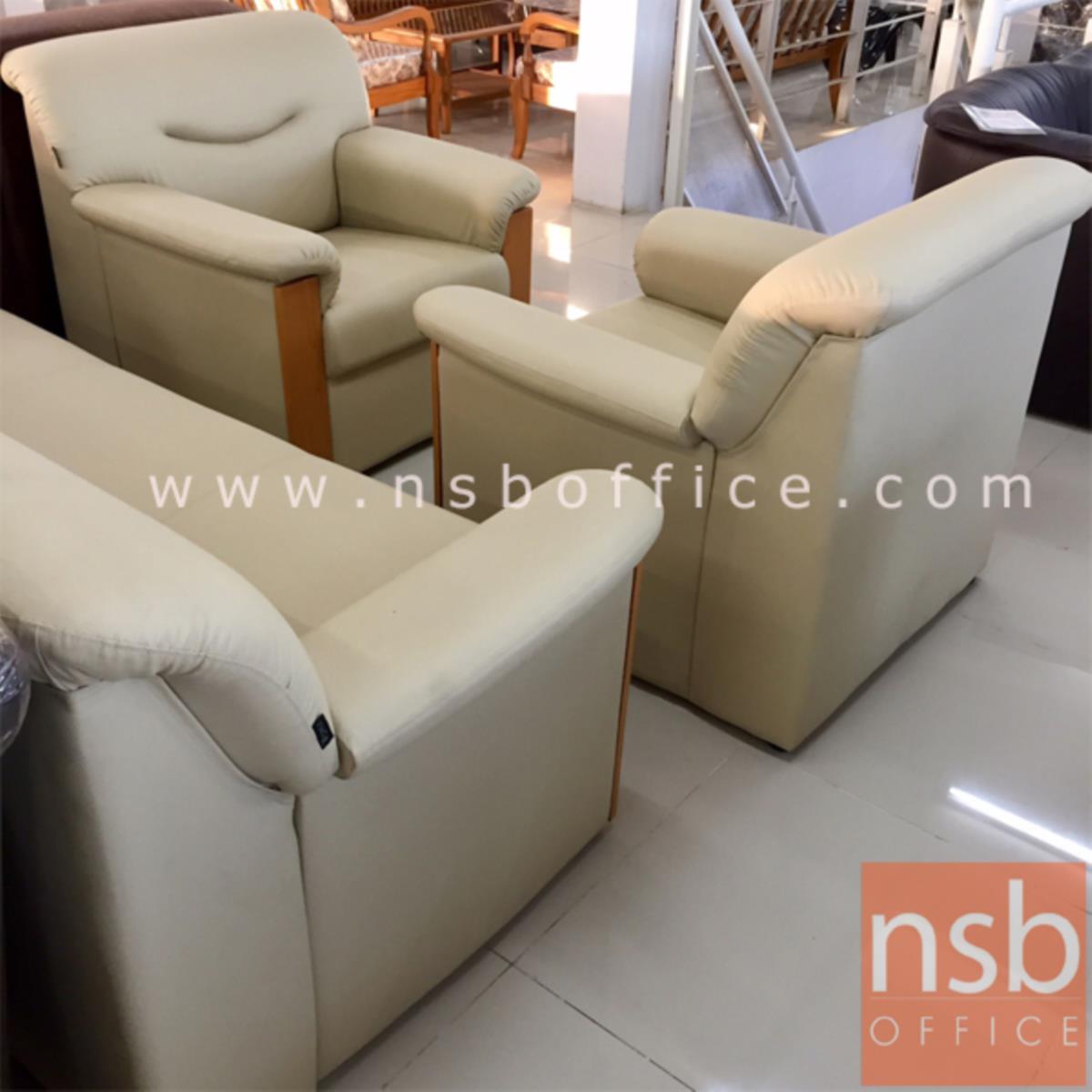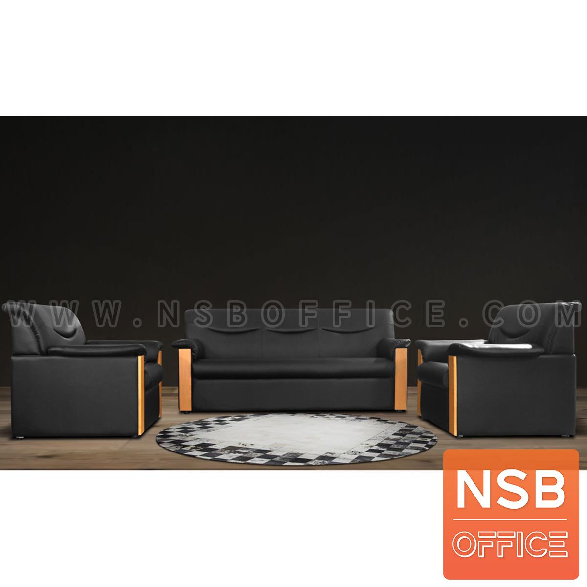 ชุดโซฟารับแขกประกอบด้วย 1 ตัวยาว และ 2 ตัวสั้น/ตัวยาว 3 ที่นั่ง/ตัวสั้น 1 ที่นั่งที่นั่ง-พนักพิงบุฟองน้ำหุ้มหนังเทียม เสริมขา รูปแบบสวยงาม /สีสันสามารถระบุได้