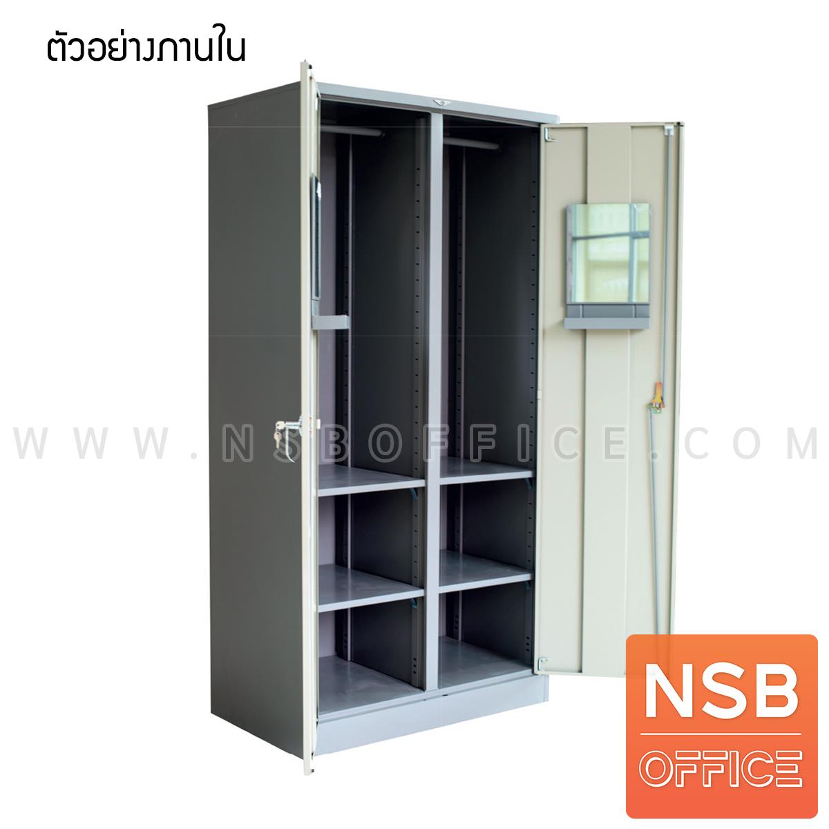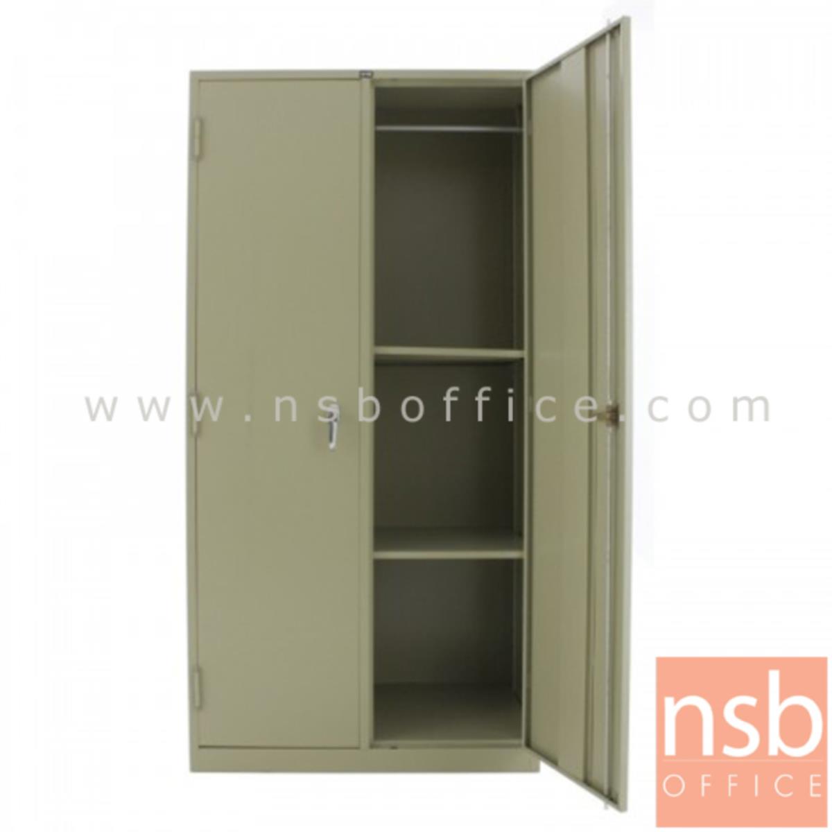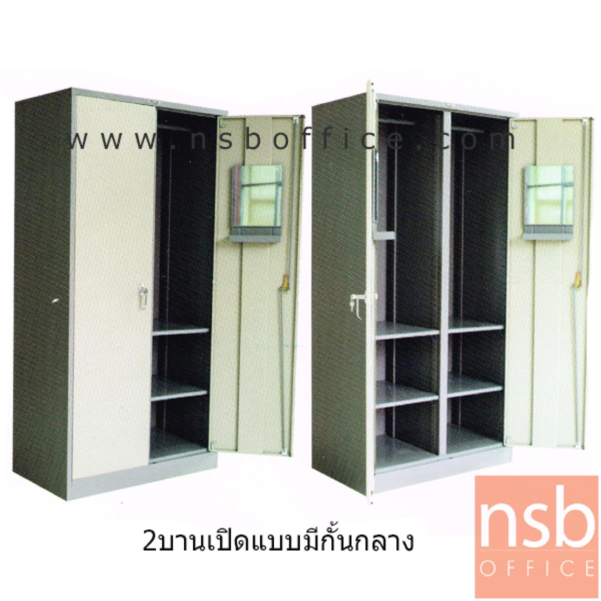 E08A017: ตู้เสื้อผ้า 2 บานเปิด มือจับเขาควาย รุ่น Hiller (ฮิลเลอร์) ขนาด 3, 4 ฟุต มีแผ่นกั้นกลางนอก (1 ประตูมี 1 ราว 2 แผ่นชั้น)
