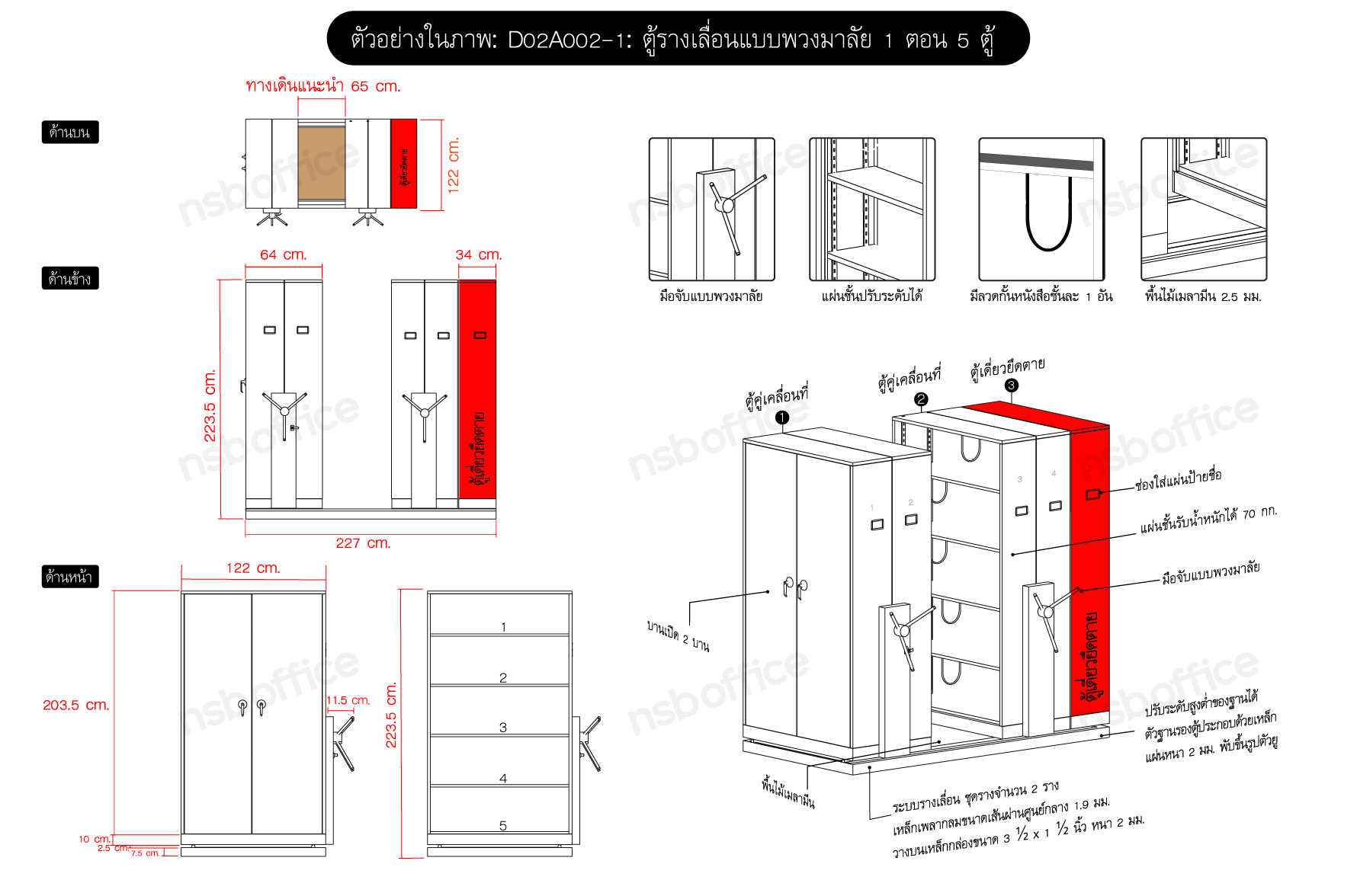 : 5 ตู้ 227W*122D*223.5H cm (ความจุ 375 แฟ้ม)