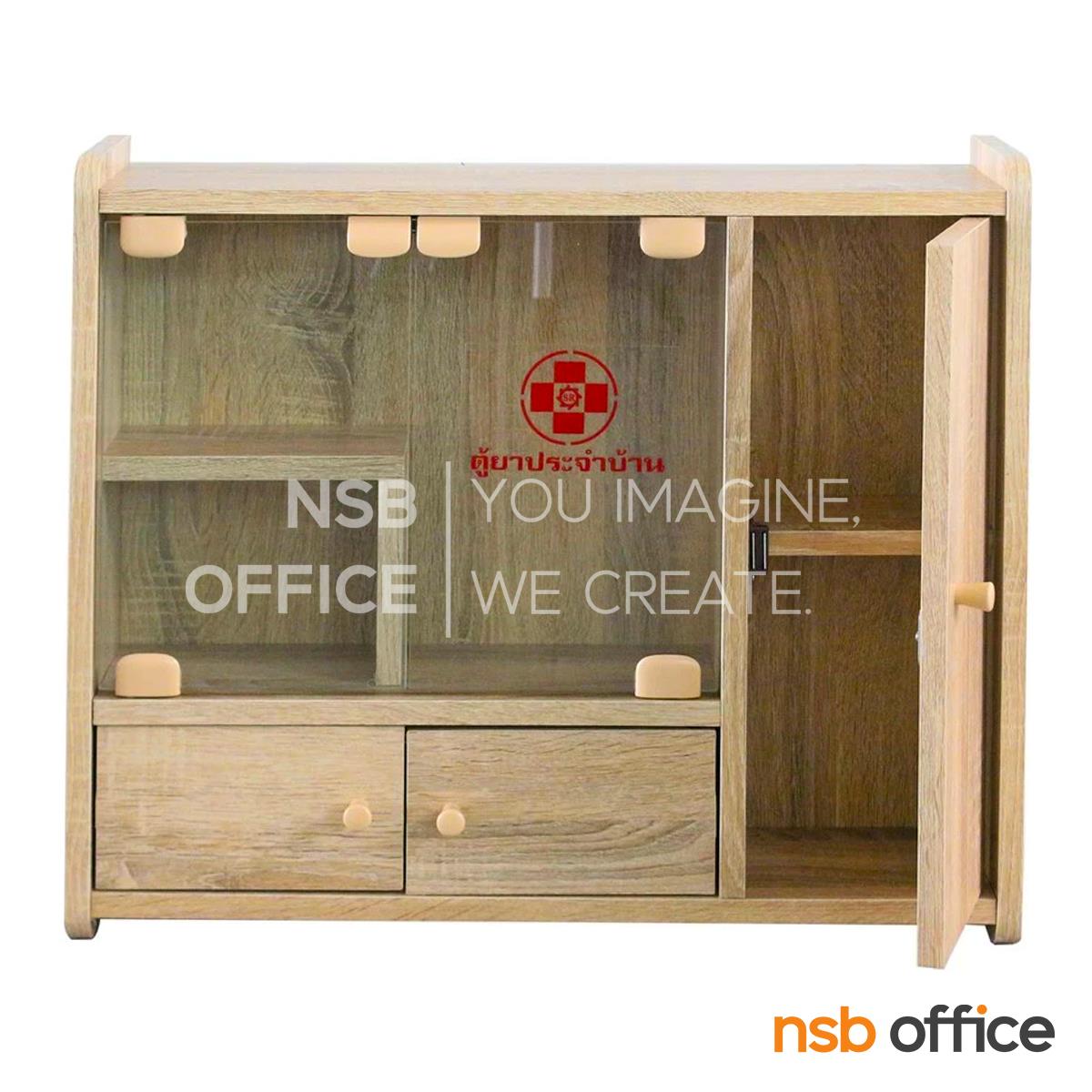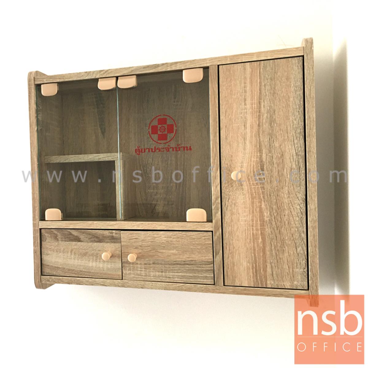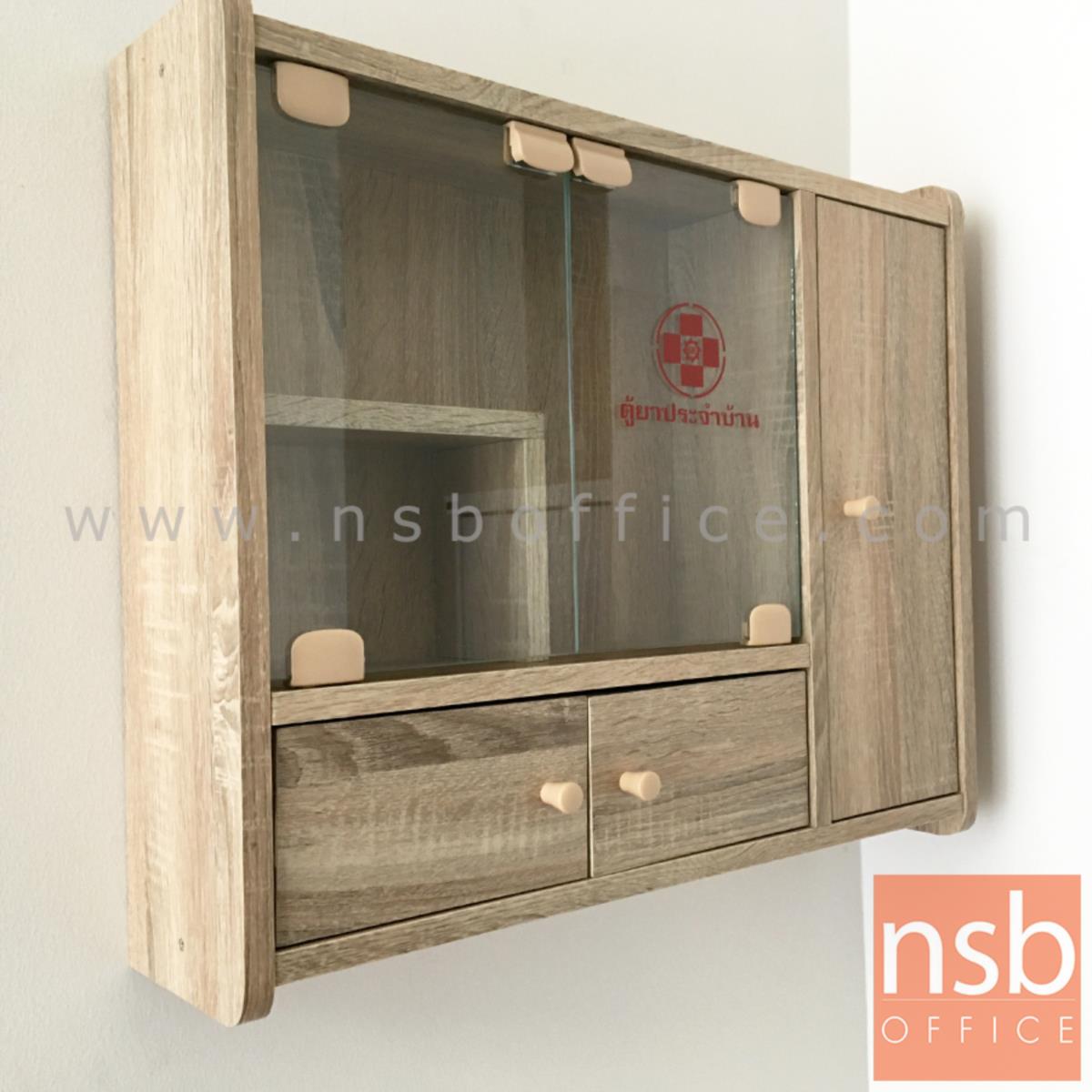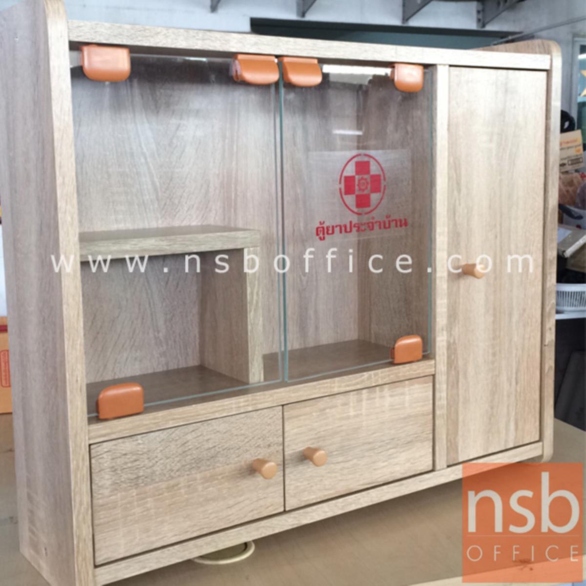 ผลิตจากไม้ปาร์ติเกิลบอร์ด ผิวพีวีซี บานเปิดกระจกมีโลโก้ตู้ยา