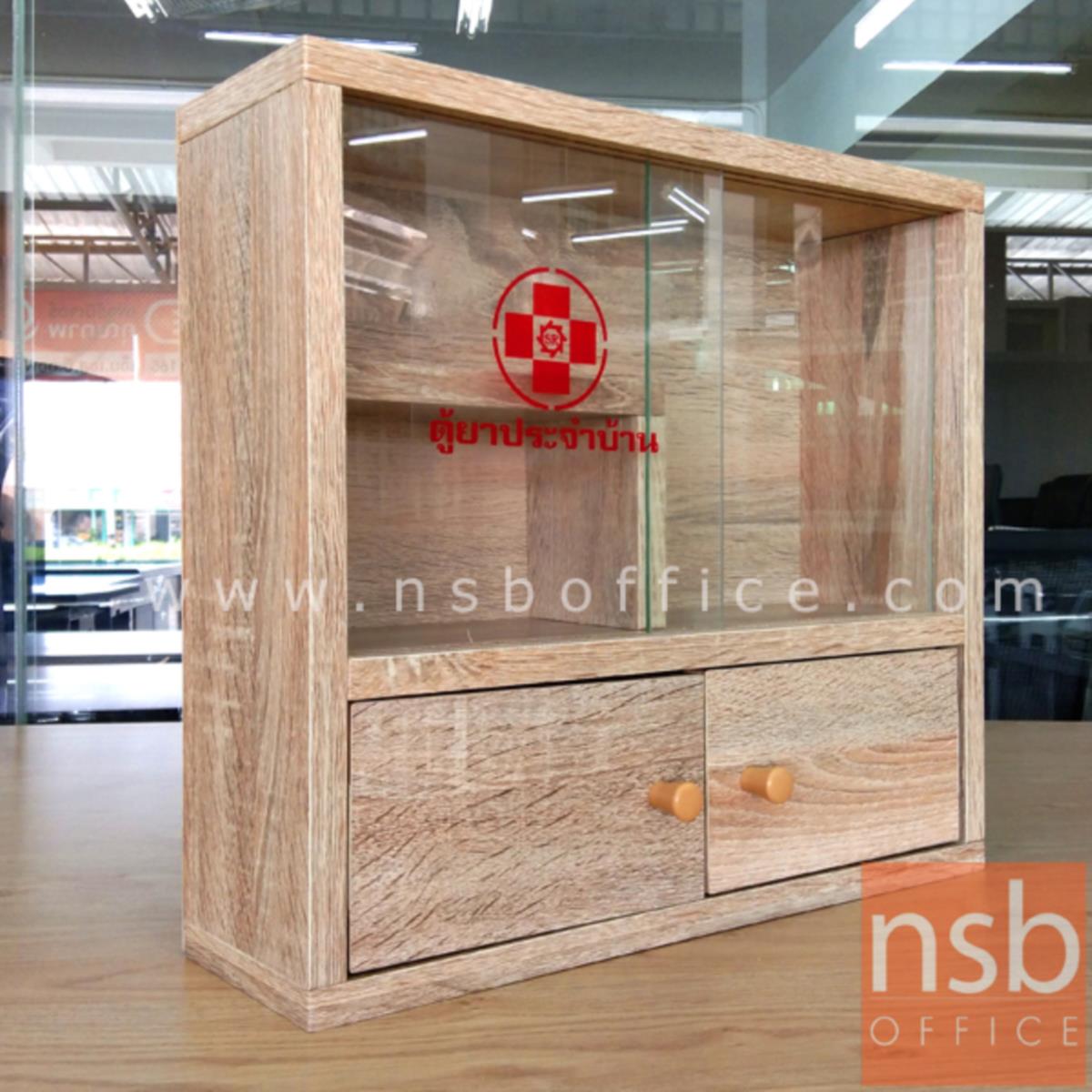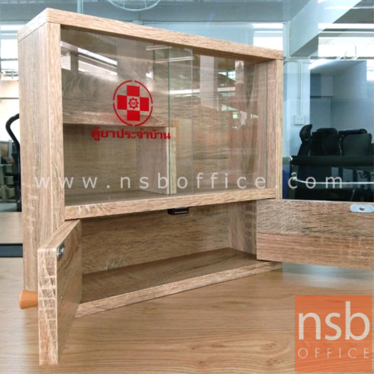 ผลิตจากไม้ปาร์ติเกิลบอร์ด ผิวพีวีซี บานเปิดกระจกมีโลโก้ตู้ยา