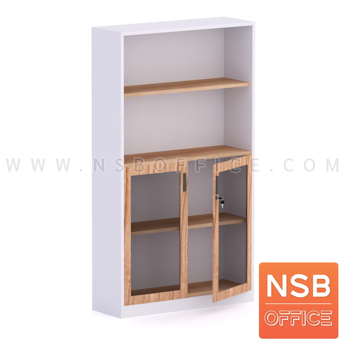 : ตู้เอกสาร บนโล่ง ล่างบานเปิดกระจก รุ่น Berkeley (บาร์กลีย์) ขนาด 90W*160H cm. สีมาตรฐาน เมลามีน