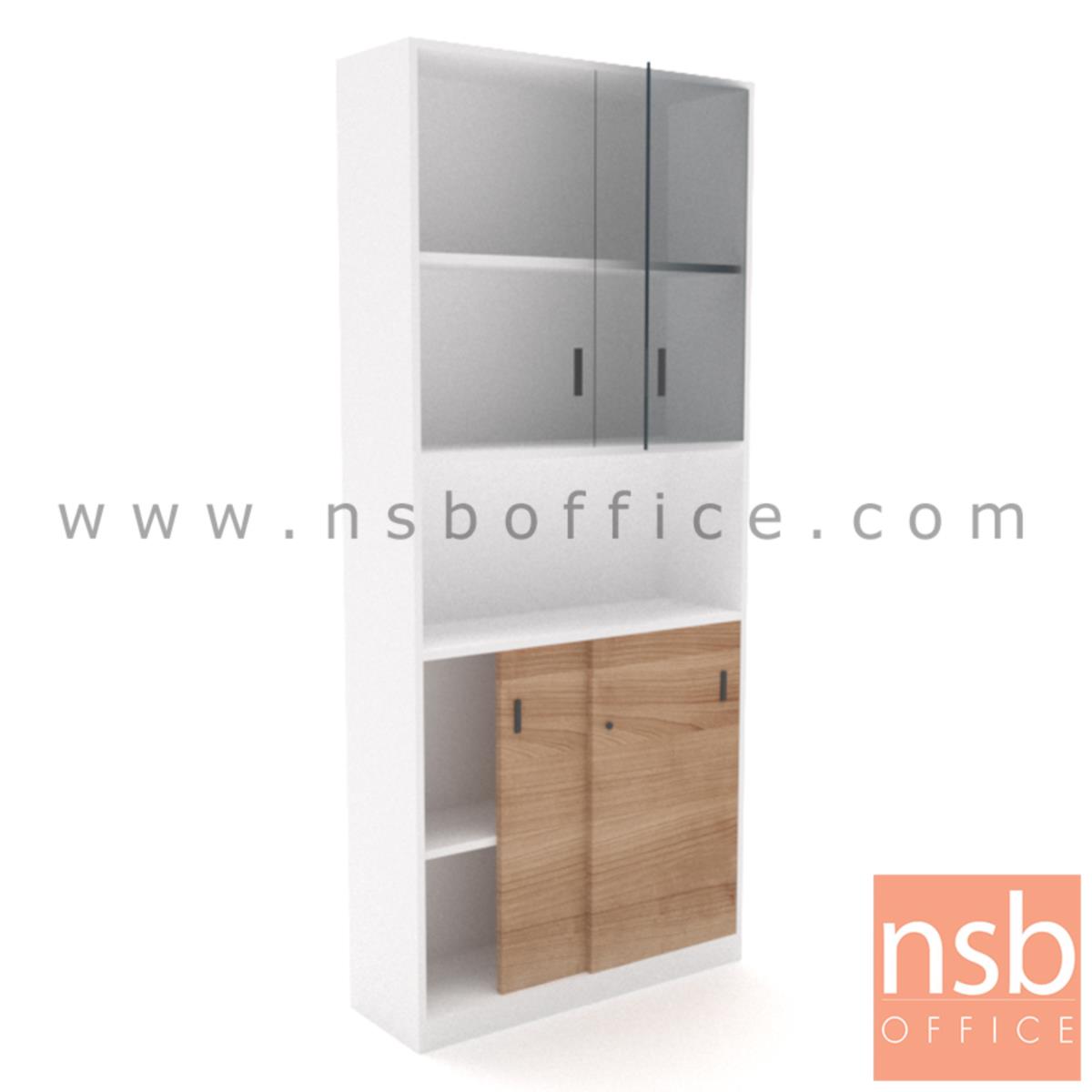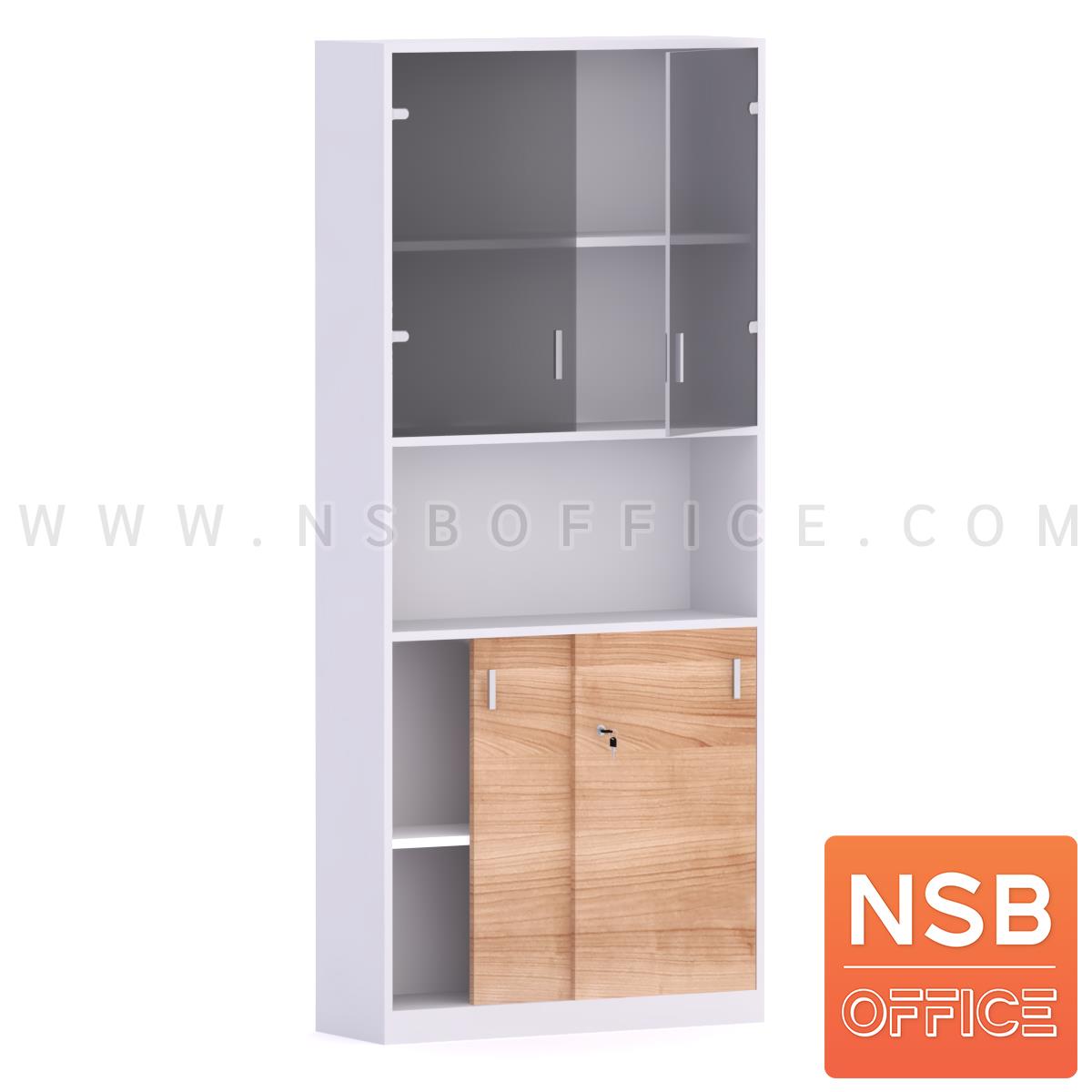 C03A037: ตู้เอกสาร 5 ชั้น บนบานเปิดกระจก ล่างบานเลื่อนทึบ กลางช่องโล่งสูง รุ่น Callies (แคลลีส์) สูง 200 cm. เมลามีน