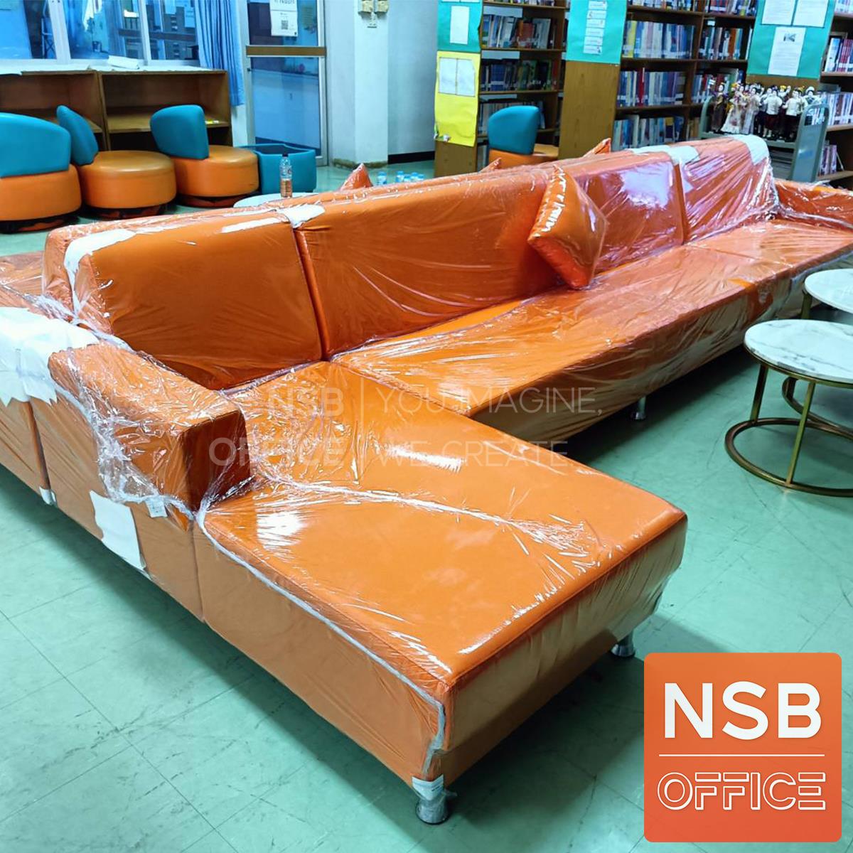 : โซฟาตัวแอล รุ่น DL-41 หุ้มหนังเทียม ขนาด 203W cm. ขาชุบโครเมี่ยม