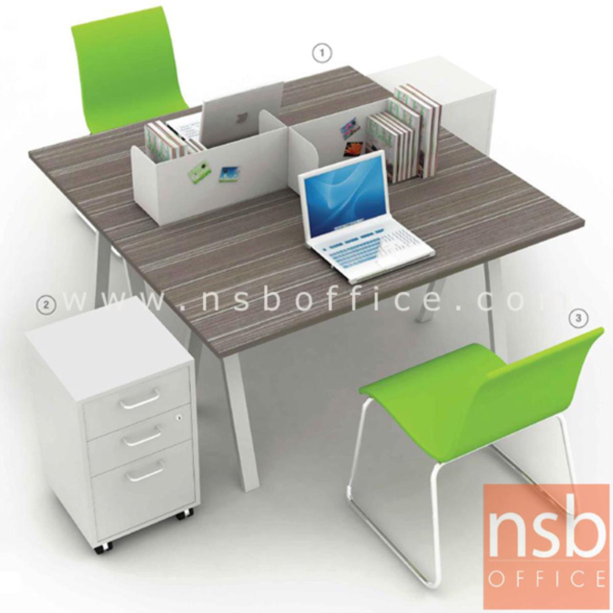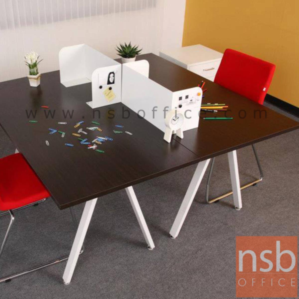 A23A001: ชุดโต๊ะทำงานกลุ่ม 2 ที่นั่ง รุ่น A-LEG ขนาด 150W cm. พร้อมมินิสกรีนเหล็ก