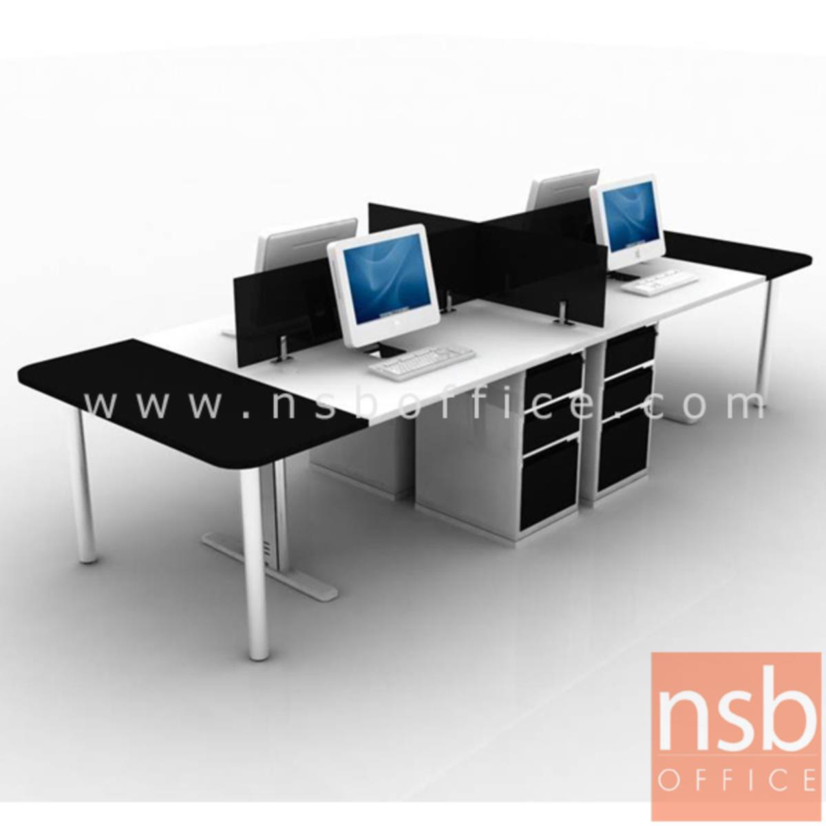 : ชุดโต๊ะทำงานกลุ่ม 4 ที่นั่ง รุ่น WS024G ขนาด 360W cm. (มีแผ่นท๊อปต่อหัวท้าย) พร้อมมินิสกรีนกระจกและลิ้นชัก ขาเหล็ก