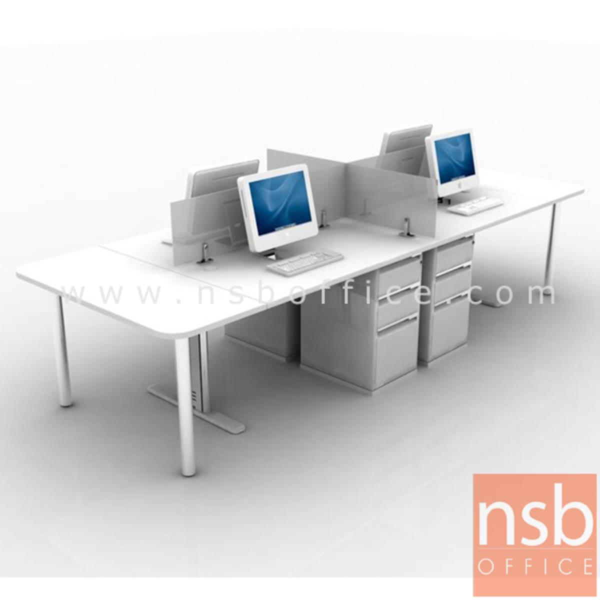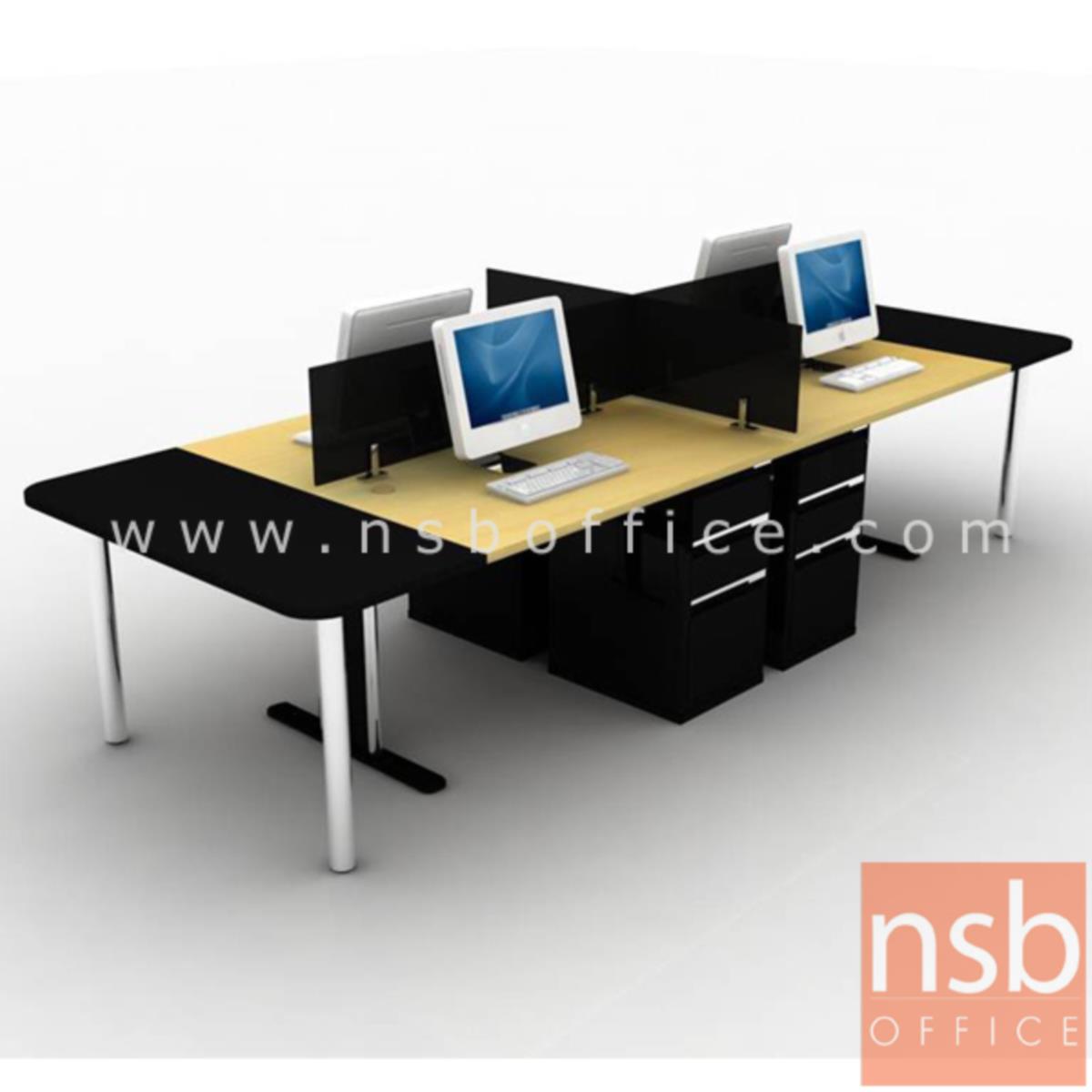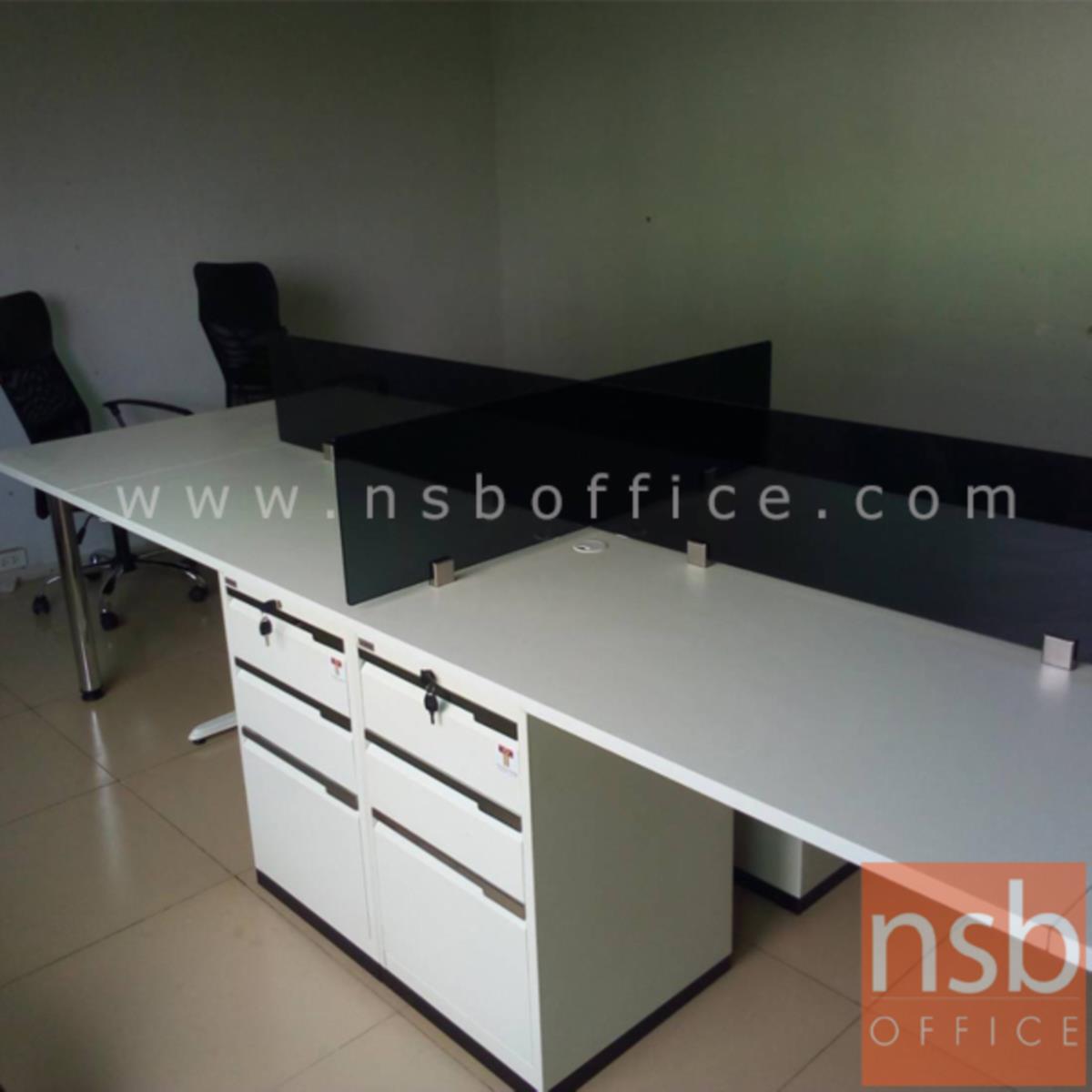 : ชุดโต๊ะทำงานกลุ่ม 4 ที่นั่ง รุ่น WS024G ขนาด 240W cm. (ไม่มีแผ่นท๊อปต่อหัวท้าย) พร้อมมินิสกรีนกระจกและลิ้นชัก ขาเหล็ก