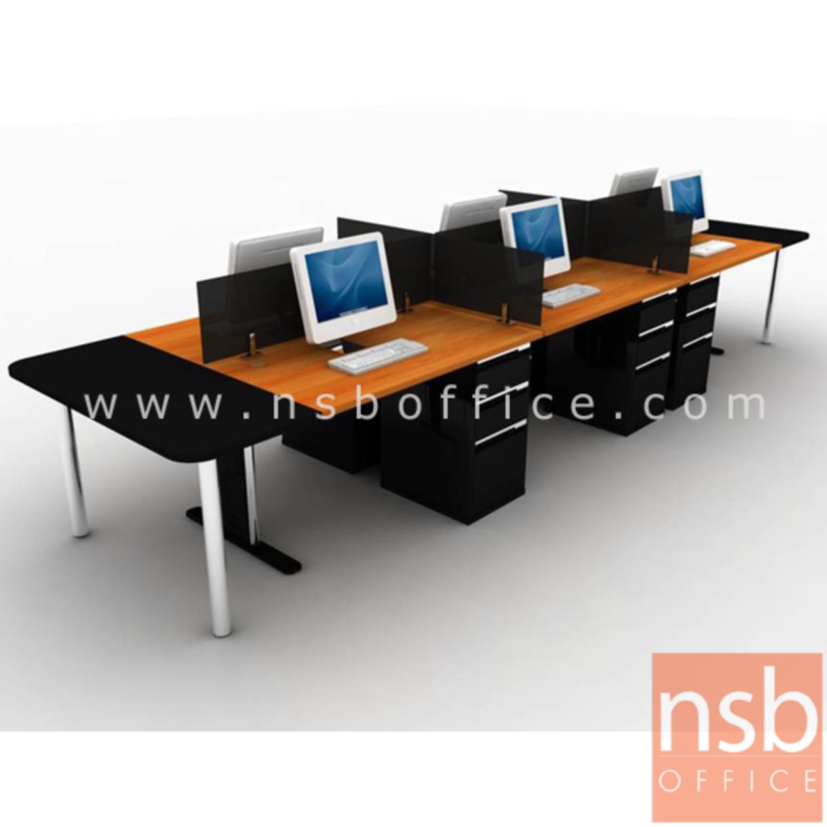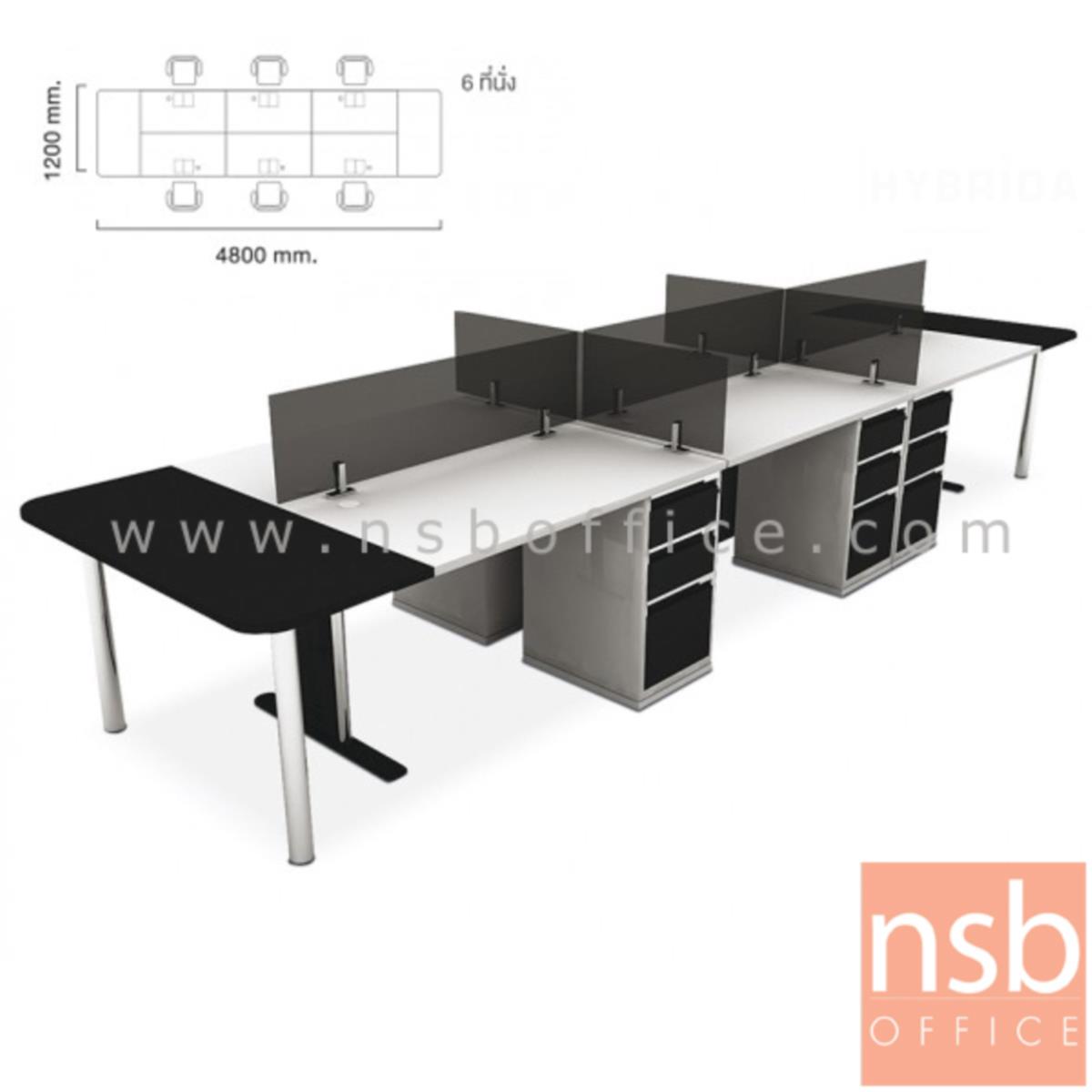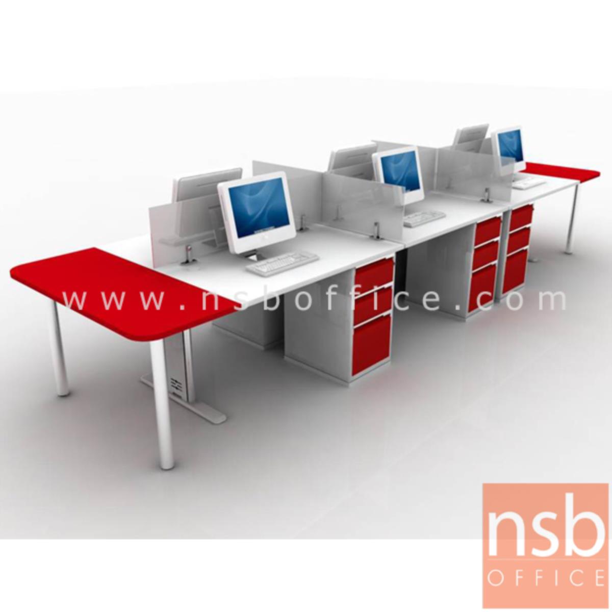 : ชุดโต๊ะทำงานกลุ่ม 6 ที่นั่ง รุ่น WS026G ขนาด 480W cm. (มีแผ่นท๊อปต่อหัวท้าย) พร้อมมินิสกรีนกระจกและตู้ 3 ลิ้นชักเหล็ก ขาเหล็ก