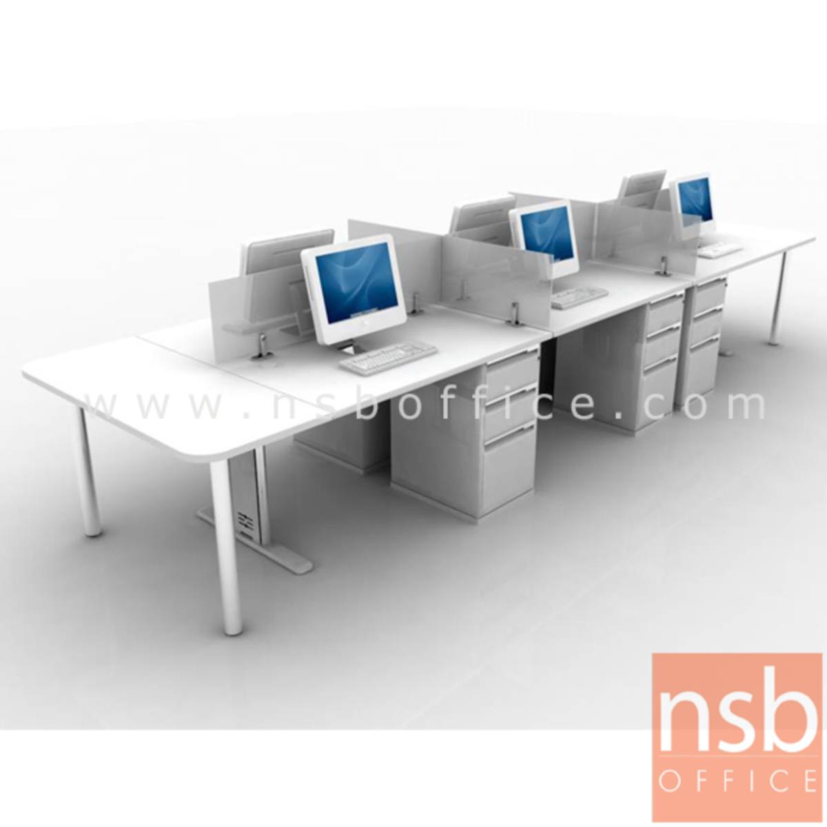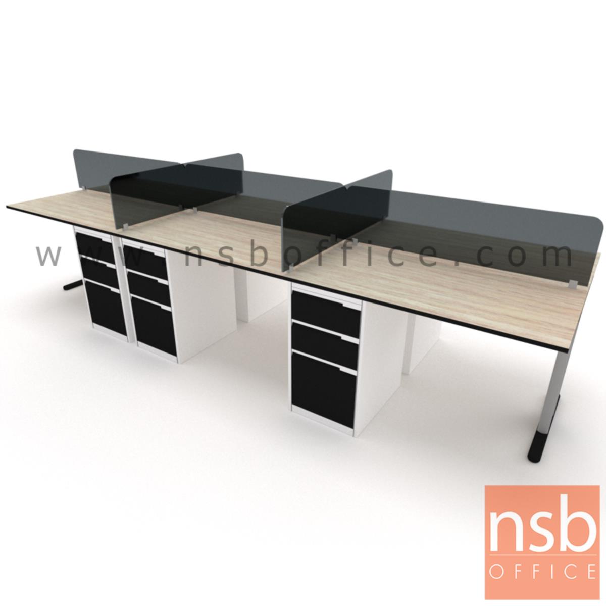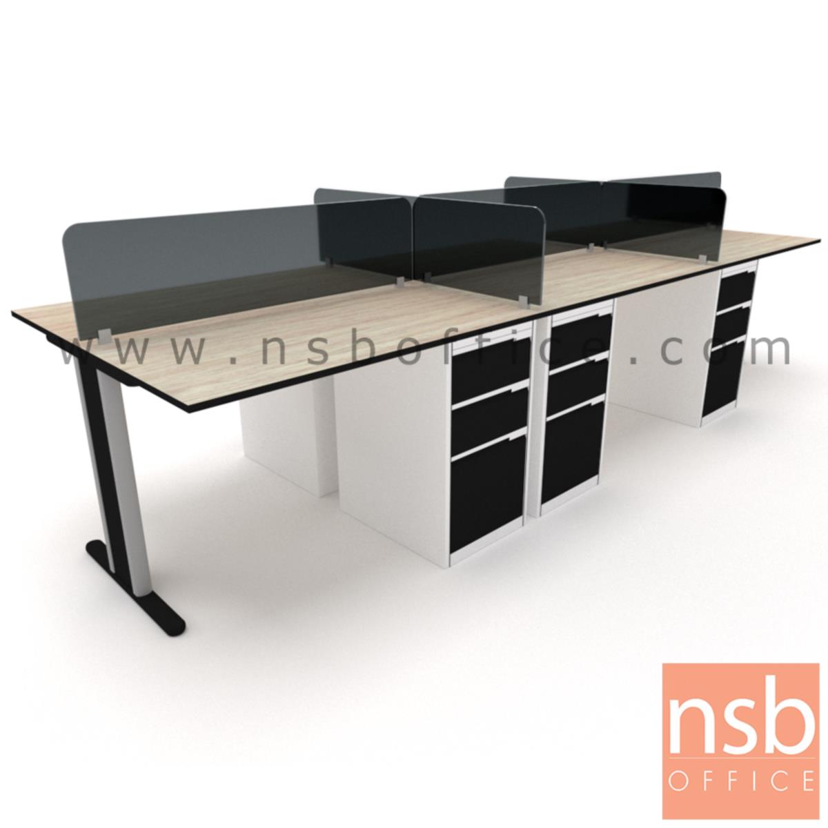 : ชุดโต๊ะทำงานกลุ่ม 6 ที่นั่ง รุ่น WS026G ขนาด 480W cm. (มีแผ่นท๊อปต่อหัวท้าย) พร้อมมินิสกรีนกระจกและตู้ 3 ลิ้นชักเหล็ก ขาเหล็ก