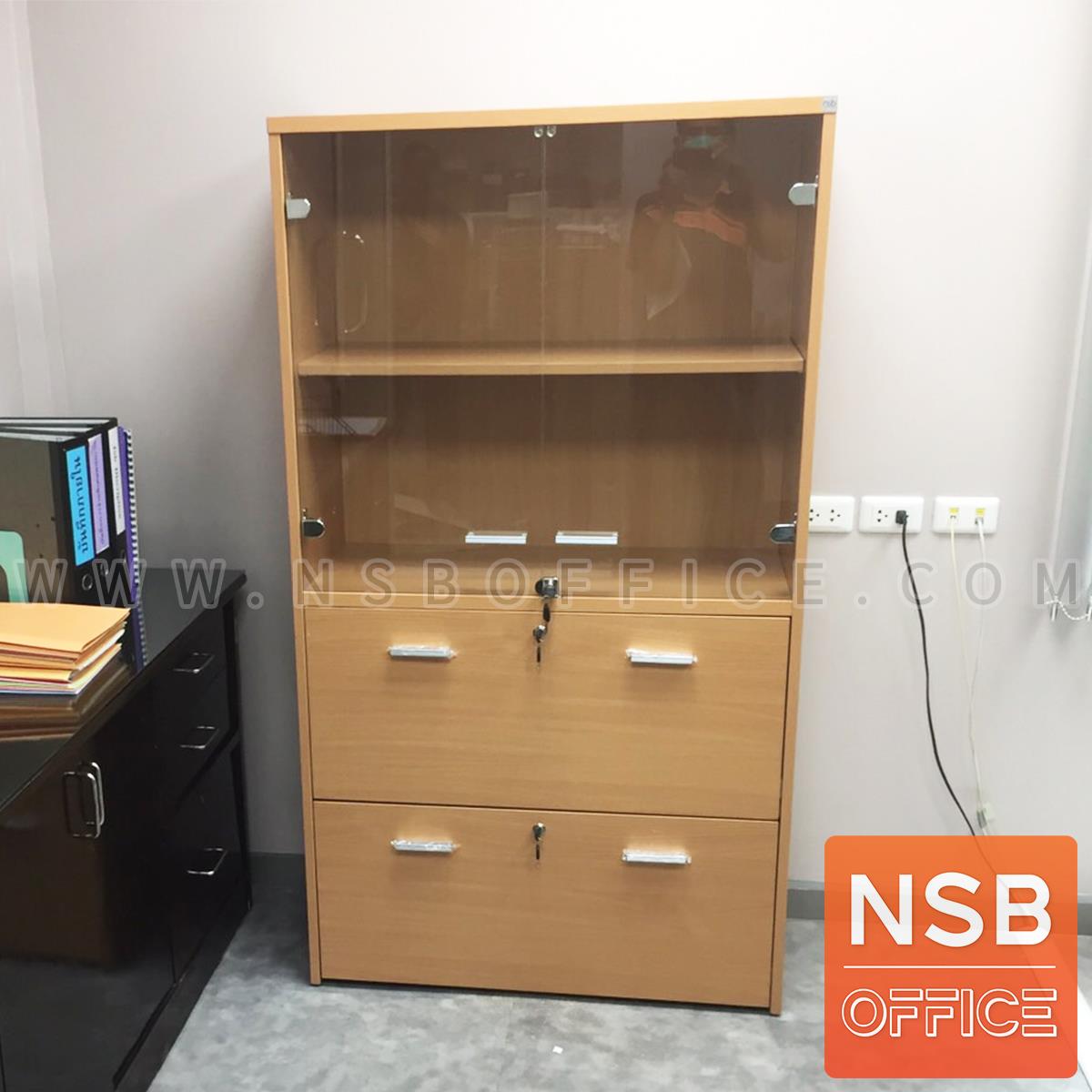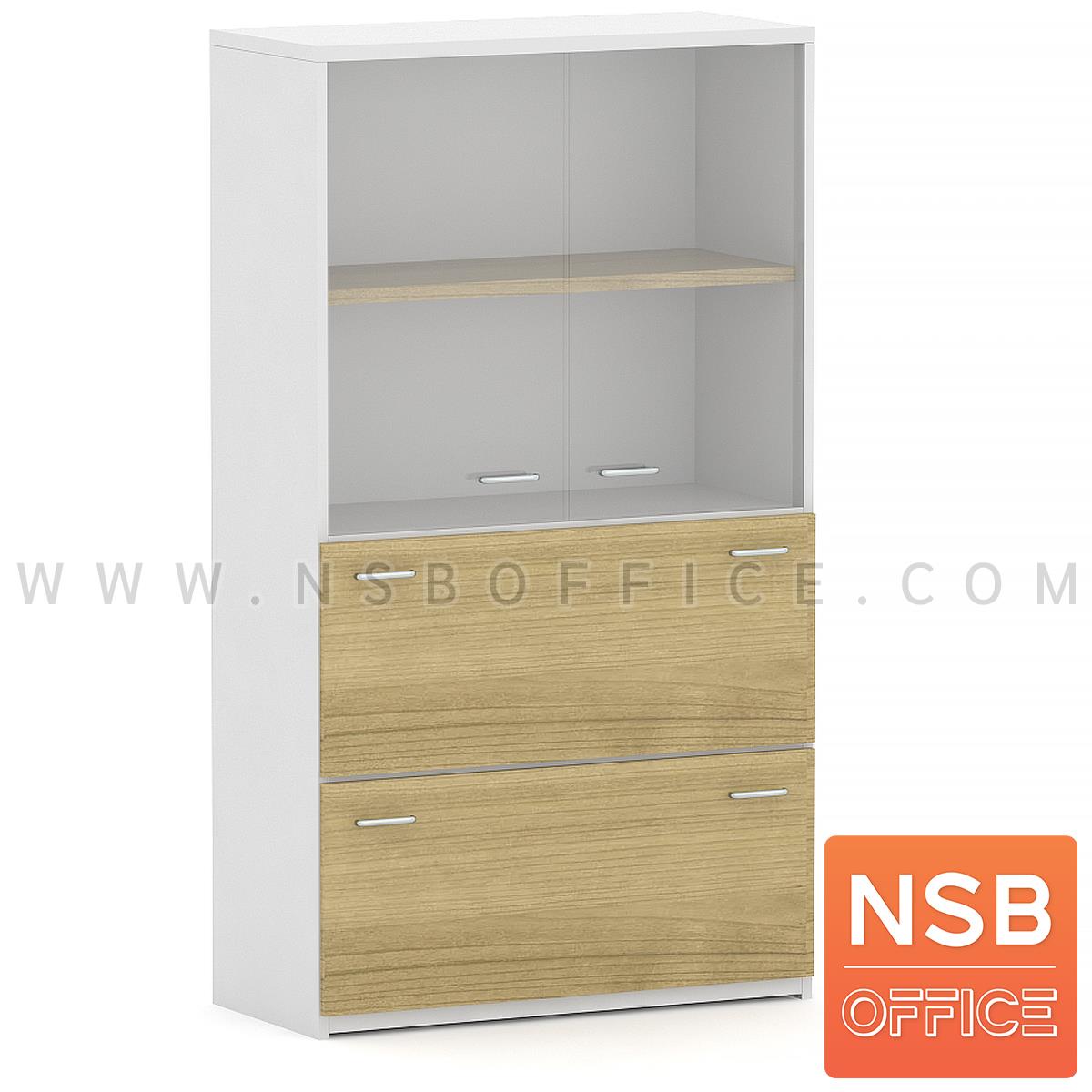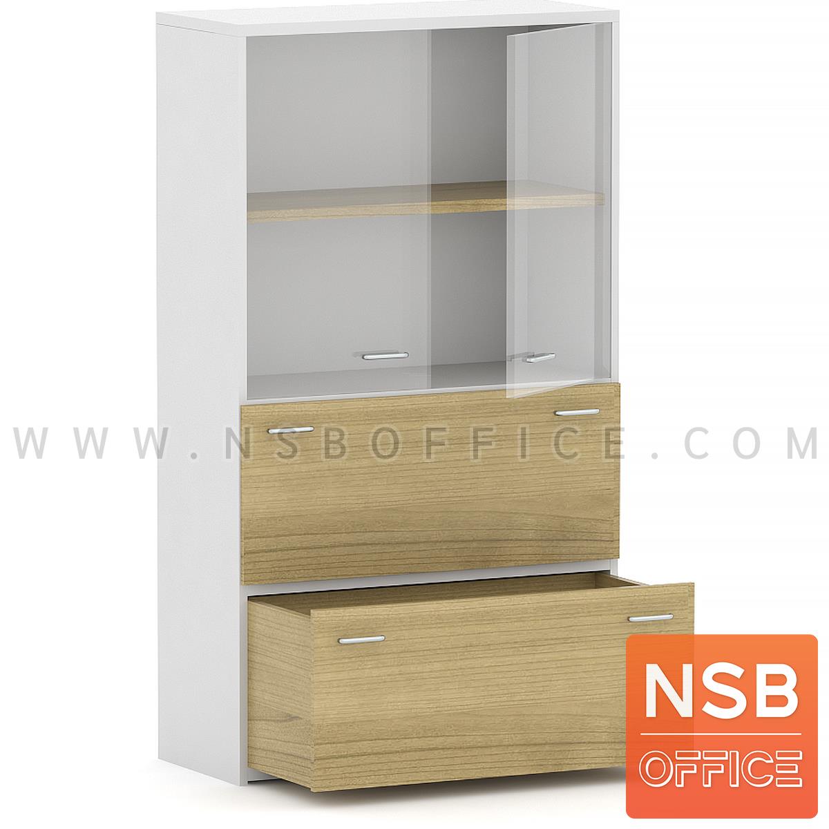 C02A011: ตู้เอกสาร สูง 160 cm. 2 บานกระจก 2 ลิ้นชักแฟ้มแขวน รุ่น Mortenson (มอร์เทนสัน) เมลามีน