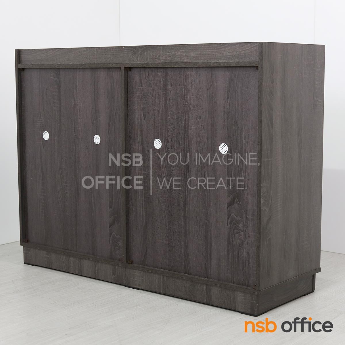 G05A020: ตู้รองเท้าบานเลื่อนเฟรมกระจก 120W*103H cm (26 คู่) ปิดผิวพีวีซีล้วน สีโอ๊ค