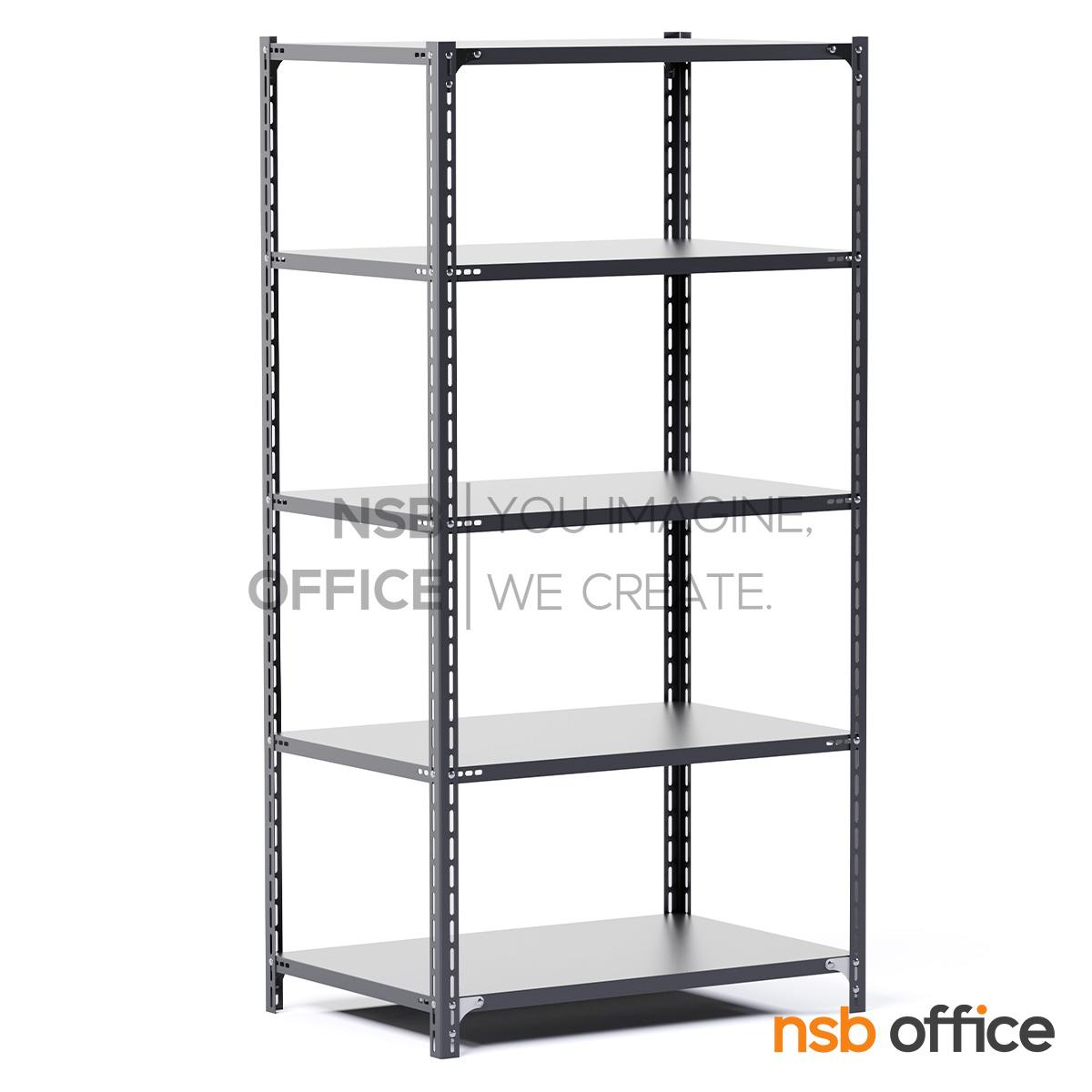 ชั้นเหล็กฉาก มี 5 แผ่นชั้น สามารถปรับระดับได้/รับน้ำหนักได้ 100 KG ต่อชั้น /ไม่สามารถใช้เสาร่วมได้ /ขนาดที่ระบุเป็นขนาดเฉพาะแผ่นชั้น ขนาดพื้นที่ในการจัดวางรวมเสา +2 cm