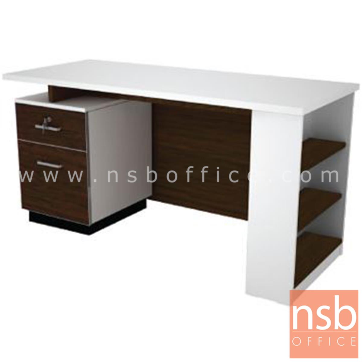 : โต๊ะทำงาน 2 ลิ้นชัก 3 ชั้นโล่งด้านข้าง รุ่น Astron (แอสทรอน) ขนาด 140W cm. เมลามีน สีเวงเก้-ขาว
