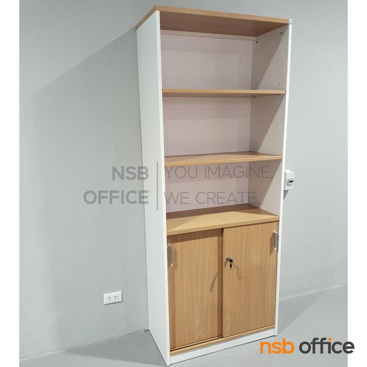 C03A023: ตู้เอกสาร 5 ชั้น บนโล่ง ล่างบานเลื่อนทึบ รุ่น Broderick (บรอเดริก) สูง 200 cm. เมลามีน