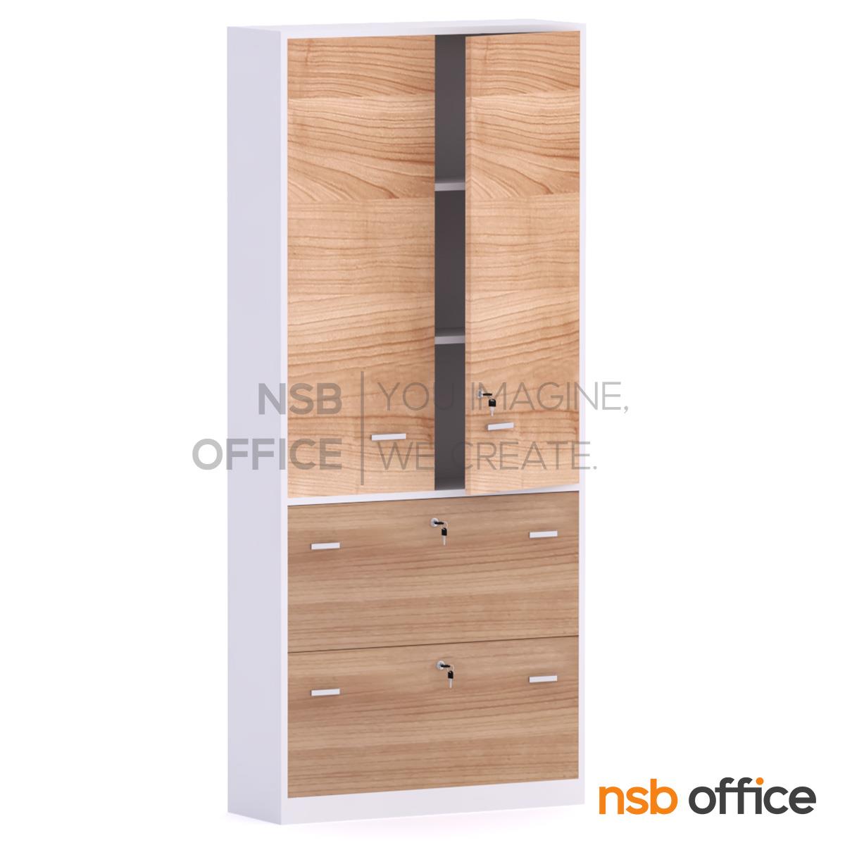 C03A028: ตู้เอกสาร 5 ชั้น บนบานเปิดทึบ ล่างลิ้นชักแฟ้มแขวน รุ่น Padavona (พาดาโวนา) สูง 200 cm. เมลามีน