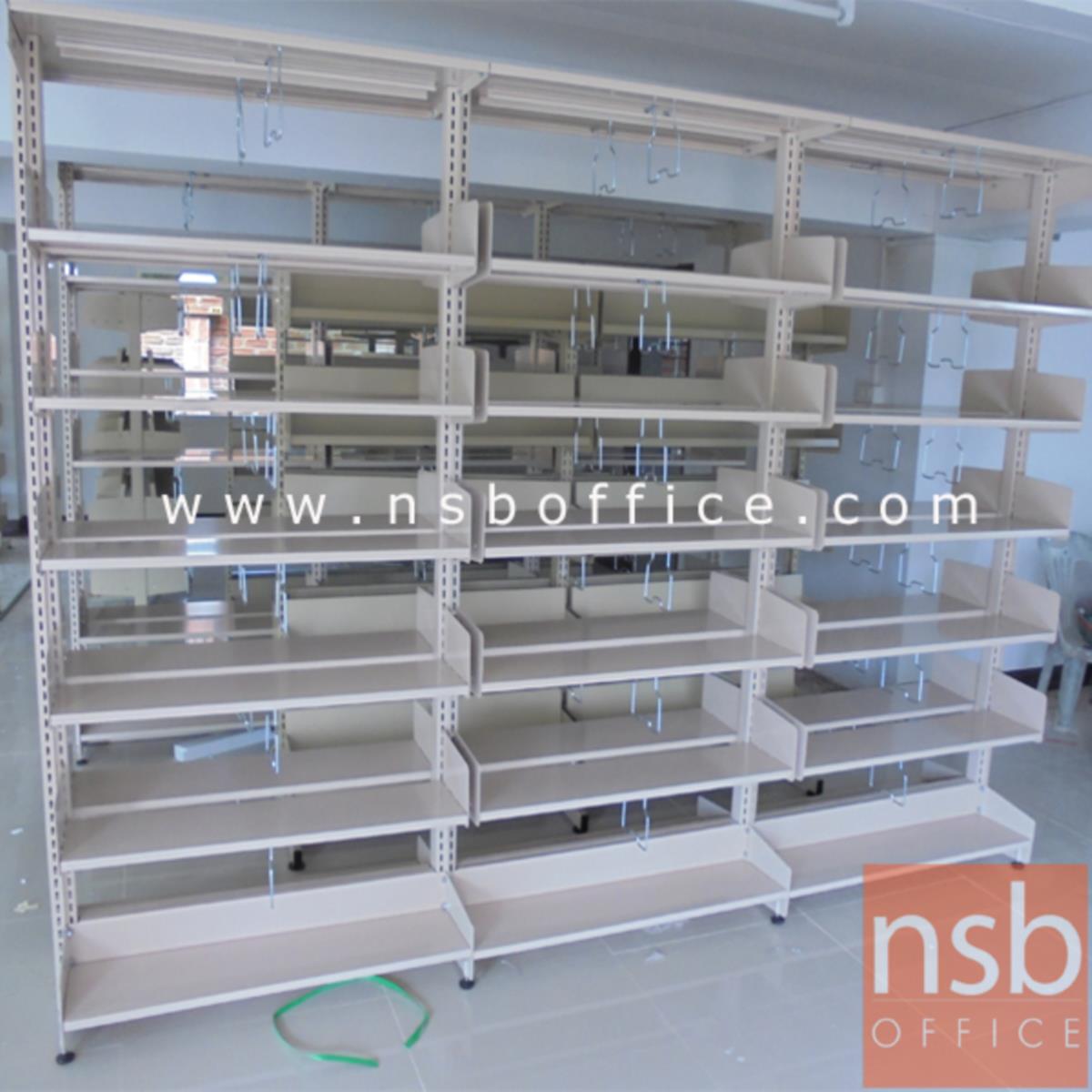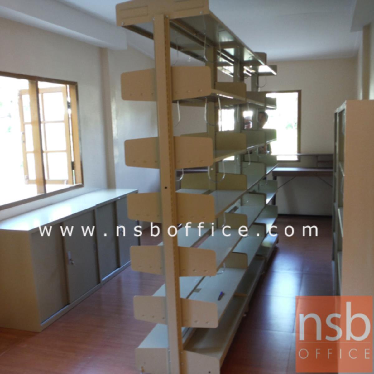 ชั้นห้องสมุด 6 ชั้นแบบ 3 ตอน มีลวดที่กั้นหนังสือ