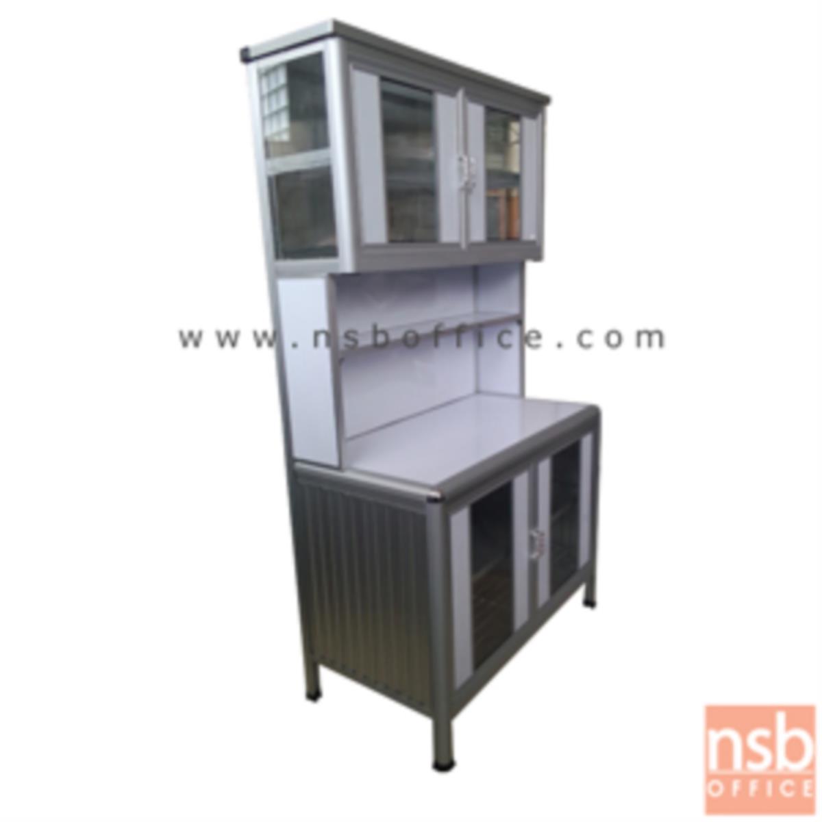 : ตู้ครัวหน้าเรียบอลูมิเนียมมุมมน ขนาด 107W*55D*198.9H cm.