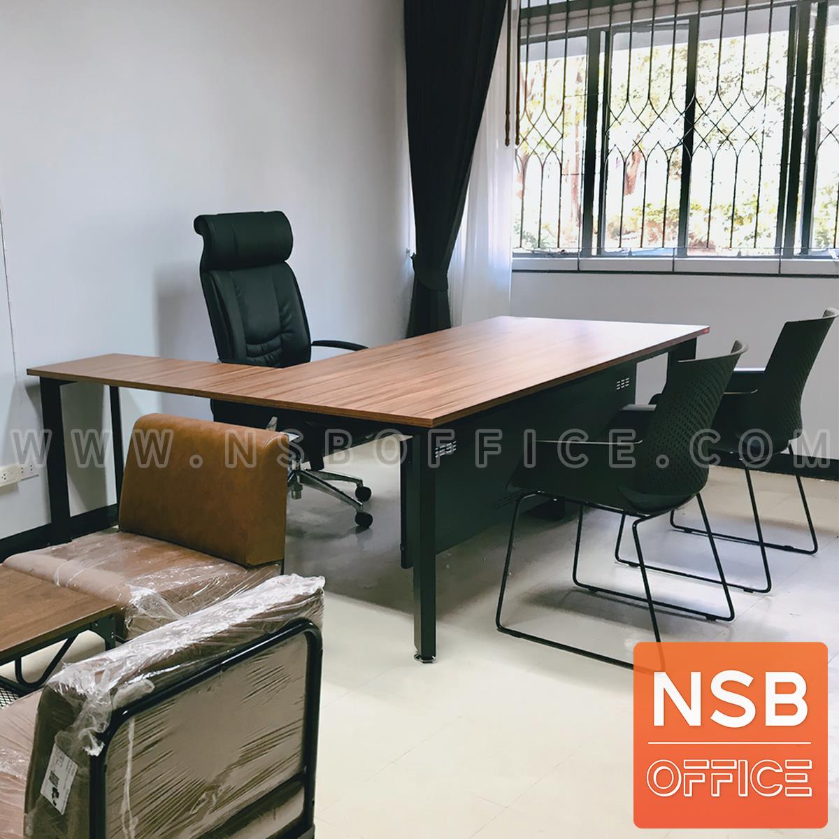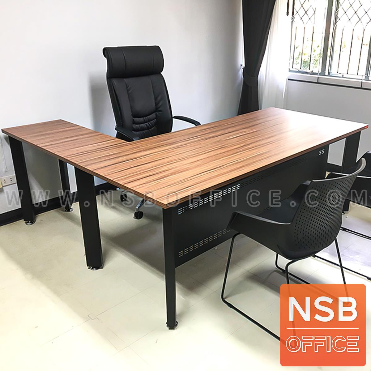 : โต๊ะทำงานตัวแอล รุ่น Elysia (อลิเซีย) ขนาด 200W1*180W2 cm. พร้อมบังโป๊เหล็ก สีวอลนัทตัดดำ