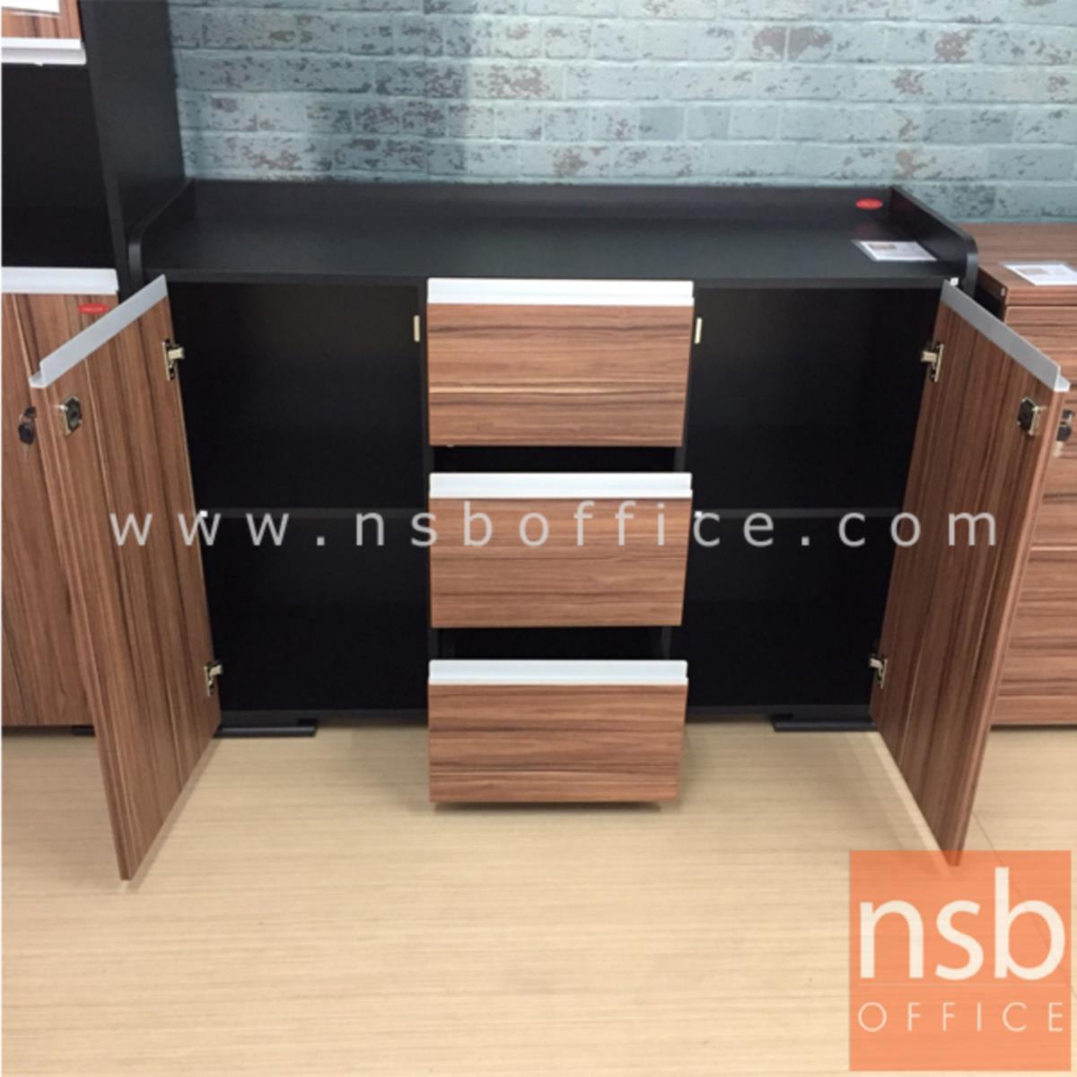 : ตู้เอกสาร สูง 86 cm. 3 ลิ้นชัก 2 บานเปิด รุ่น Mastic (มาสทิค) เมลามีน สีวอลนัทตัดดำ