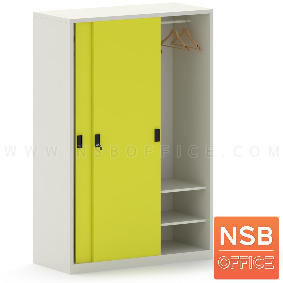 : ตู้เสื้อผ้าเหล็ก บานเลื่อนทึบสูง รุ่น Pettyfer (เพตตีเฟอร์) ขนาด 4 ฟุต 2 แผ่นชั้น