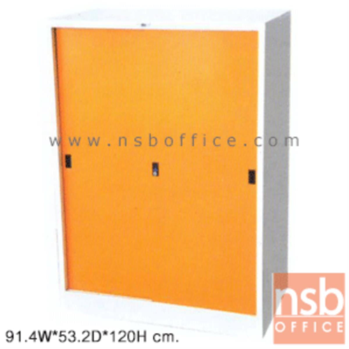 : ตู้เสื้อผ้าเหล็ก บานเลื่อนทึบเตี้ย รุ่น Yvonne (อีวอนน์) ขนาด 4 ฟุต 1 แผ่นชั้น
