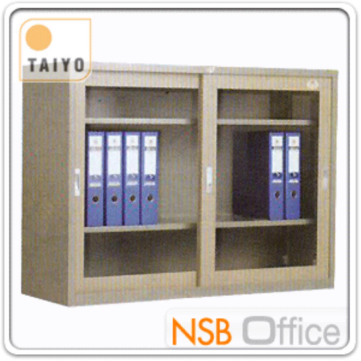 : ชุดตู้เก็บเอกสารเหล็ก 3 ฟุต บนบานเลื่อนกระจก ล่างบานเลื่อนทึบ พร้อมฐานรอง