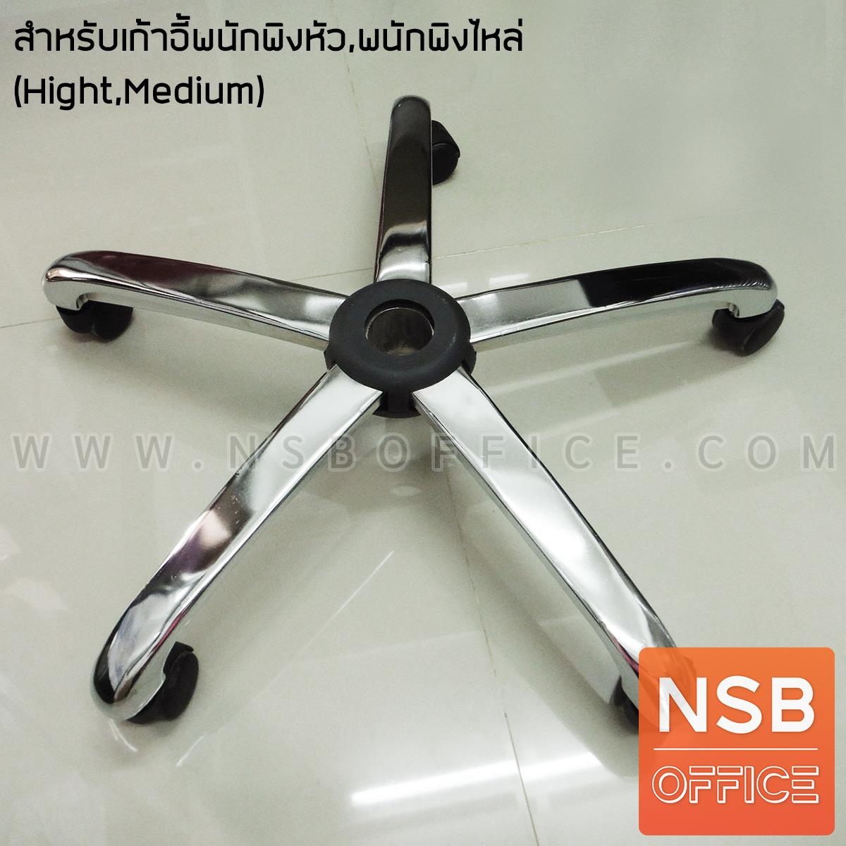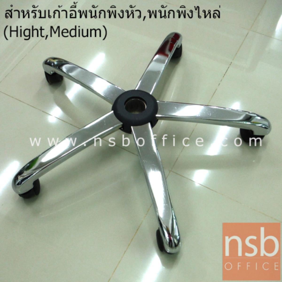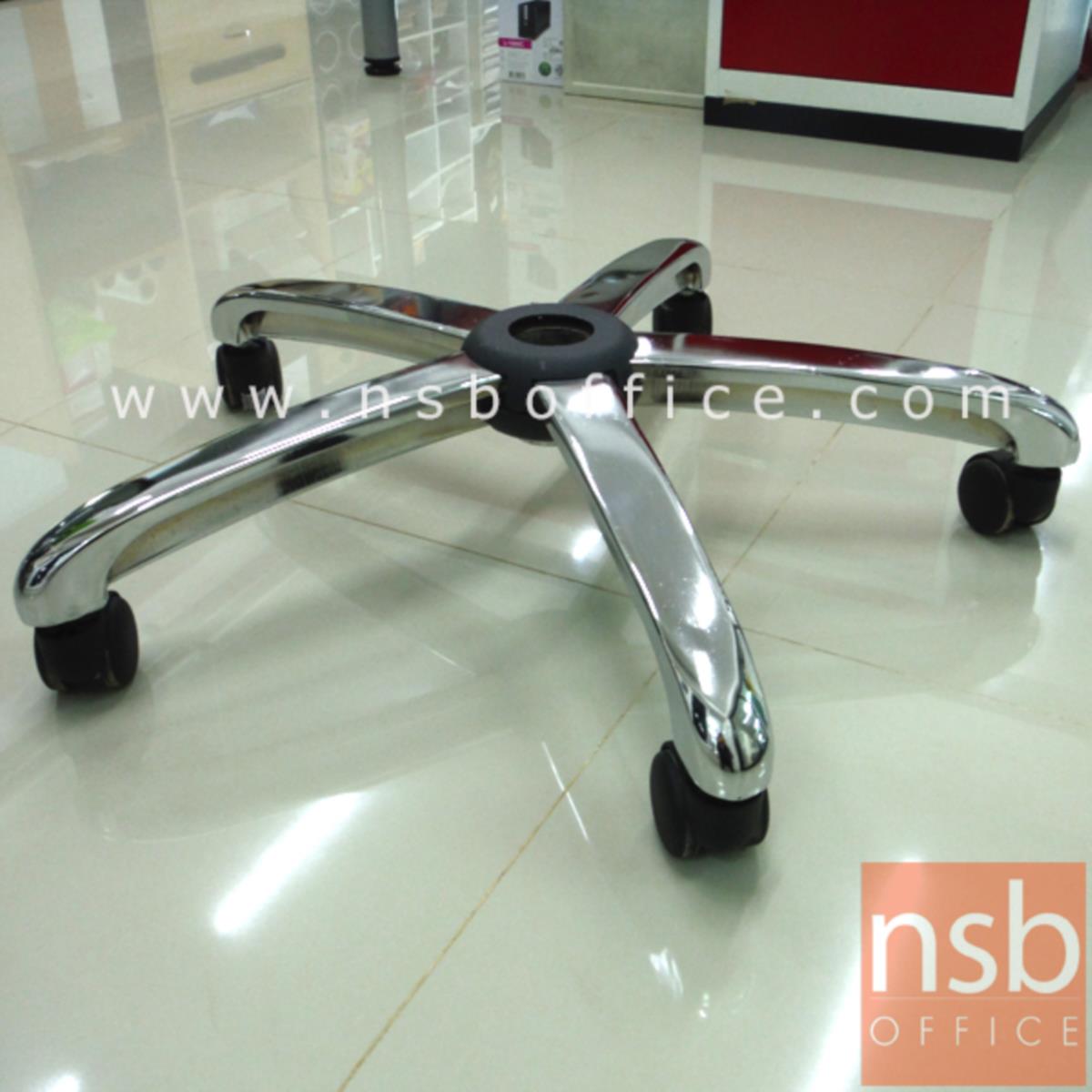 : ขาเก้าอี้ปั้มเหลี่ยมชุบโครเมี่ยม 5 แฉก ขนาด 26 นิ้ว พร้อมลูกล้อพลาสติก