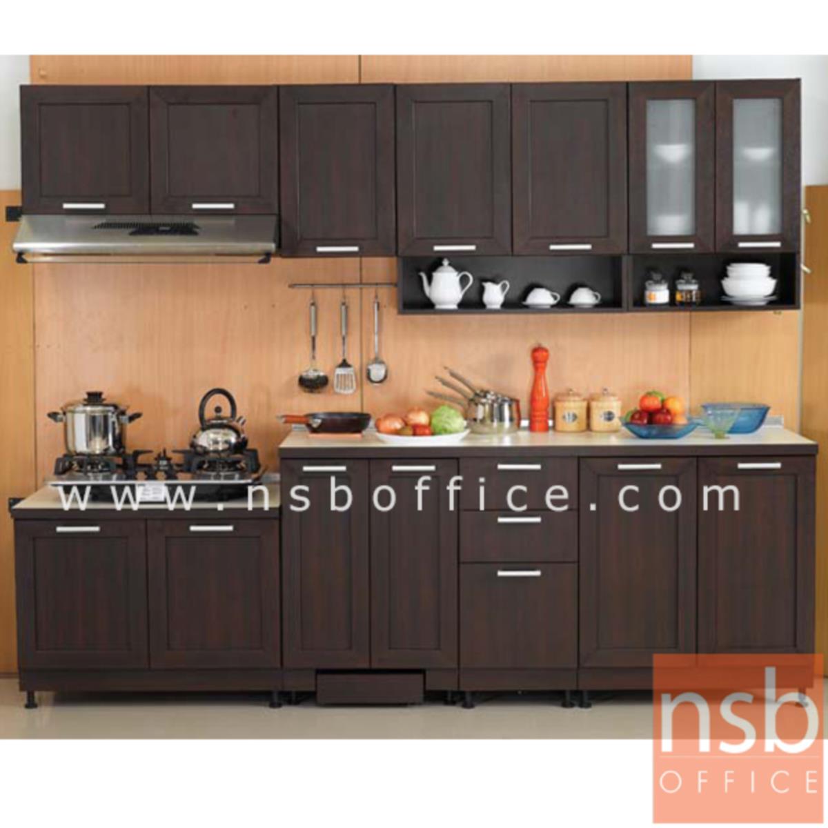 K03A027: ชุดตู้ครัวหน้าเรียบ 270W cm. รุ่น STEP-008 พร้อมตู้แขวนลอย
