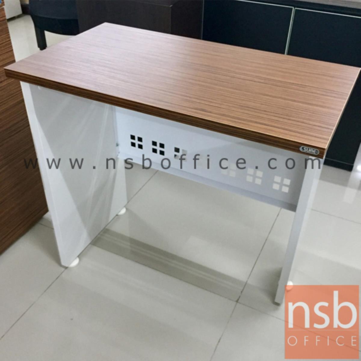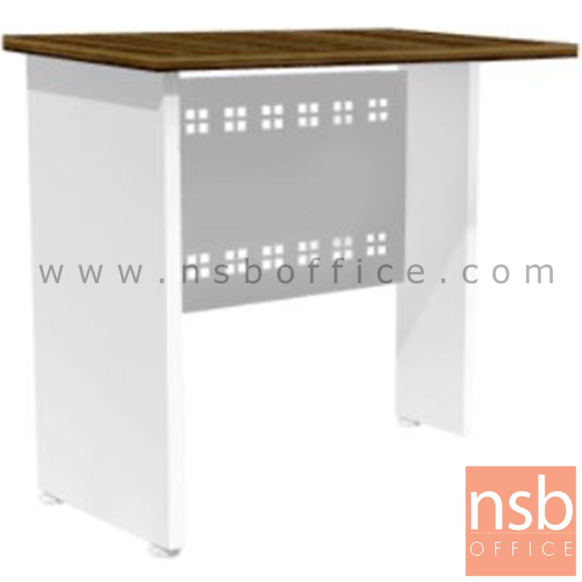 แผ่นรับหน้าโต๊ะซ้าย-ขวาทําด้วยวัสดุ PARTICLE BOARD ความหนา 25 มม.เคลือบผิวด้วย MELAMINE RESIN FILM ด้วยระบบ SHOT CYCLE ทั้ง 2 หน้า สีขาวผิวเรียบ ปิดขอบด้วย PVC หนา 1.0 มม.