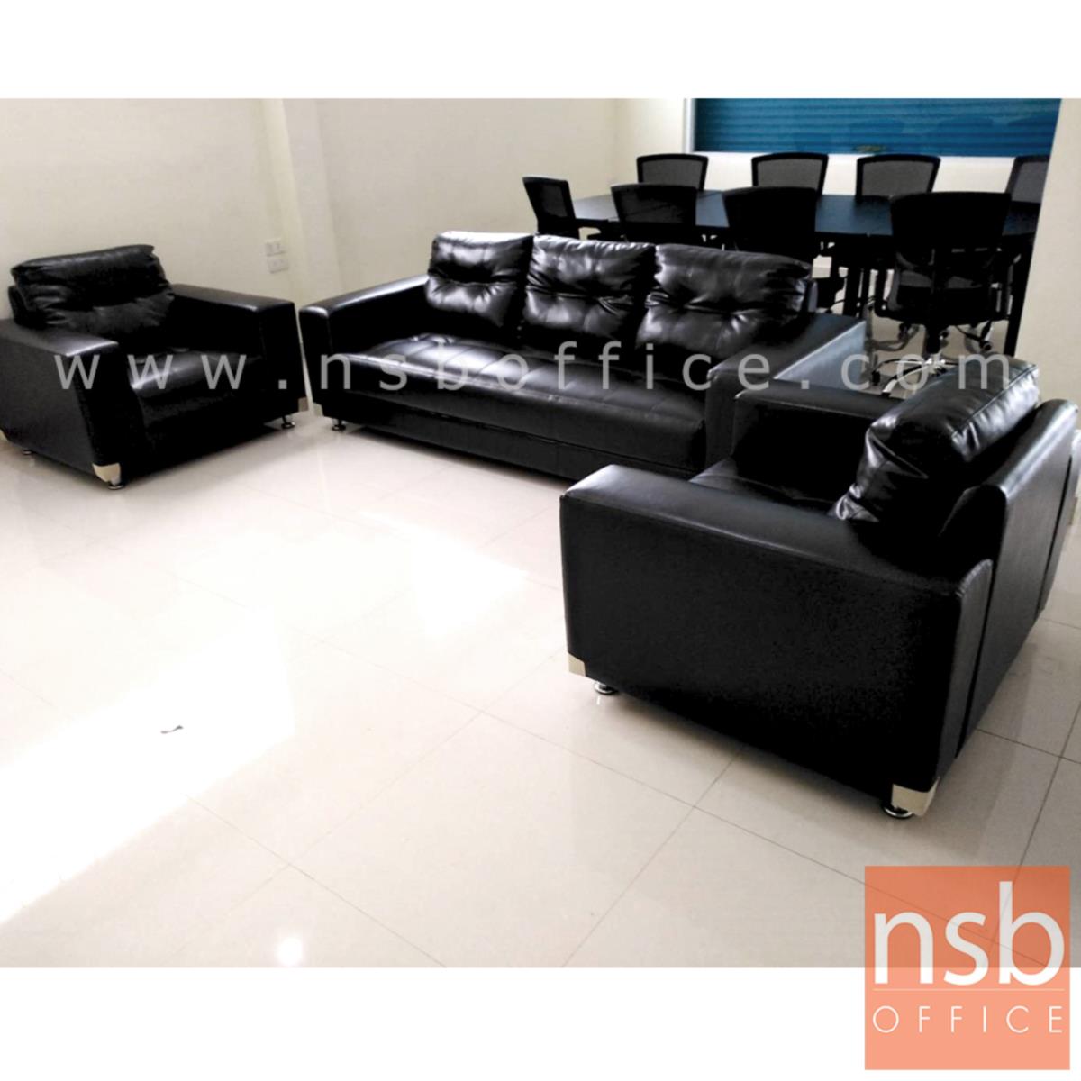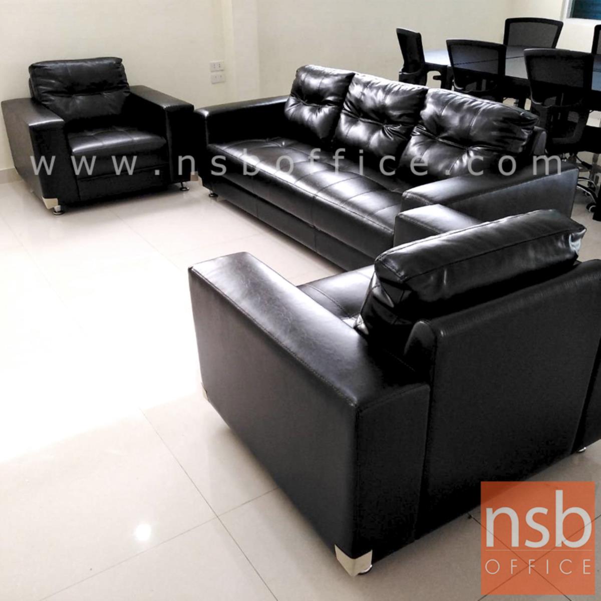 B12A142: โซฟาสำนักงานหนัง PU รุ่น Mackie (แม็คกี้) ขนาด 103W ,223W cm. เสริมขาเหล็กชุบโครเมี่ยม(ยกเลิกวันที่ 21 พ.ย.2556)