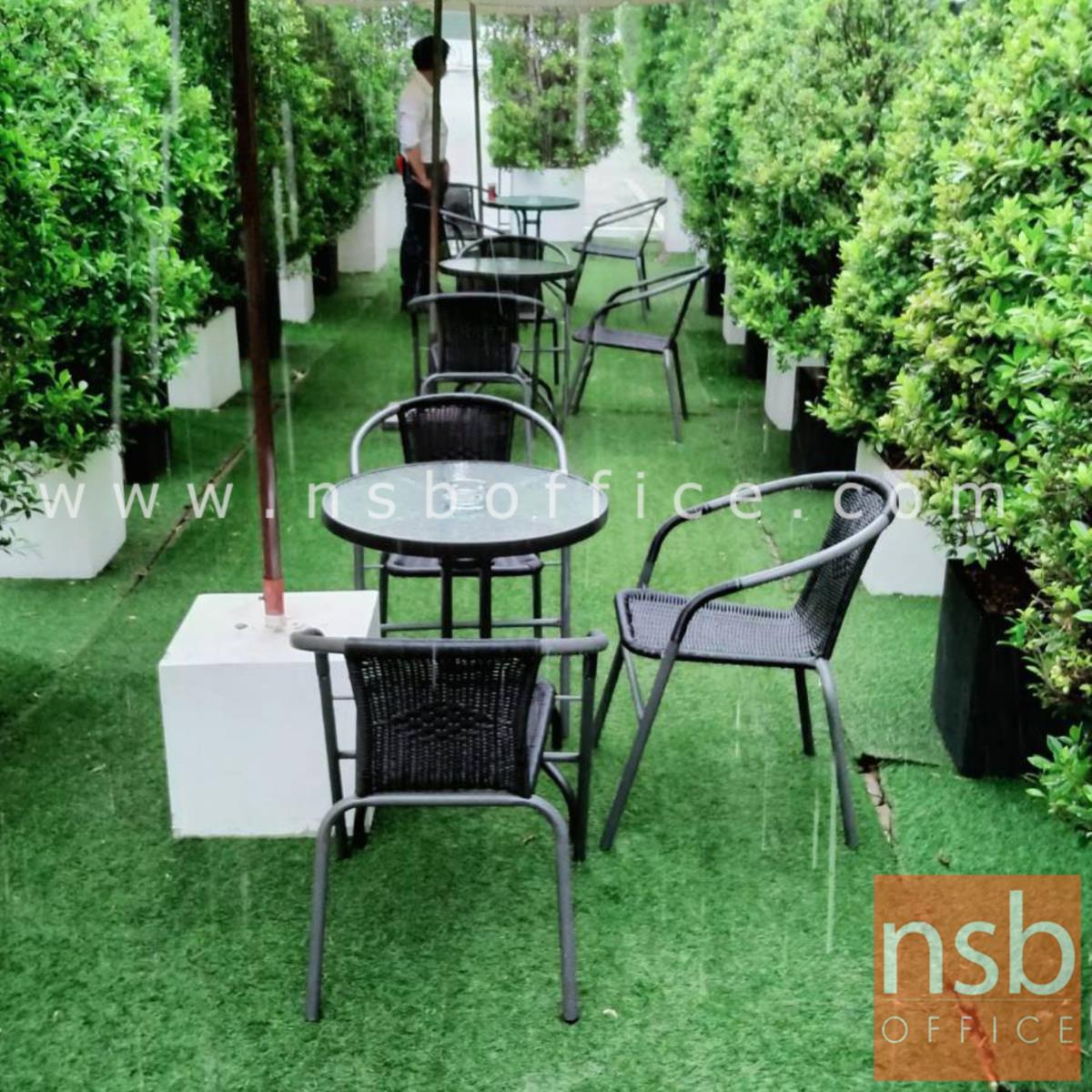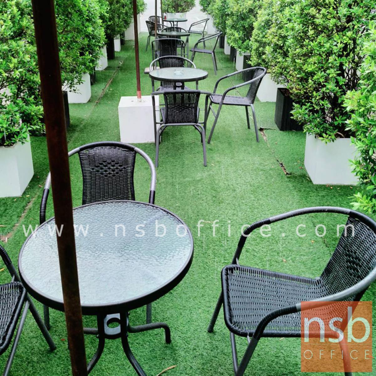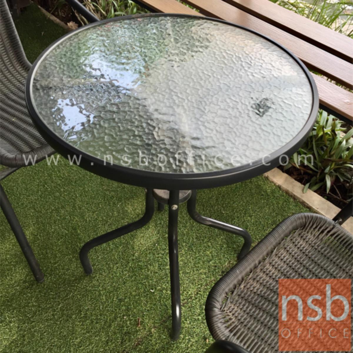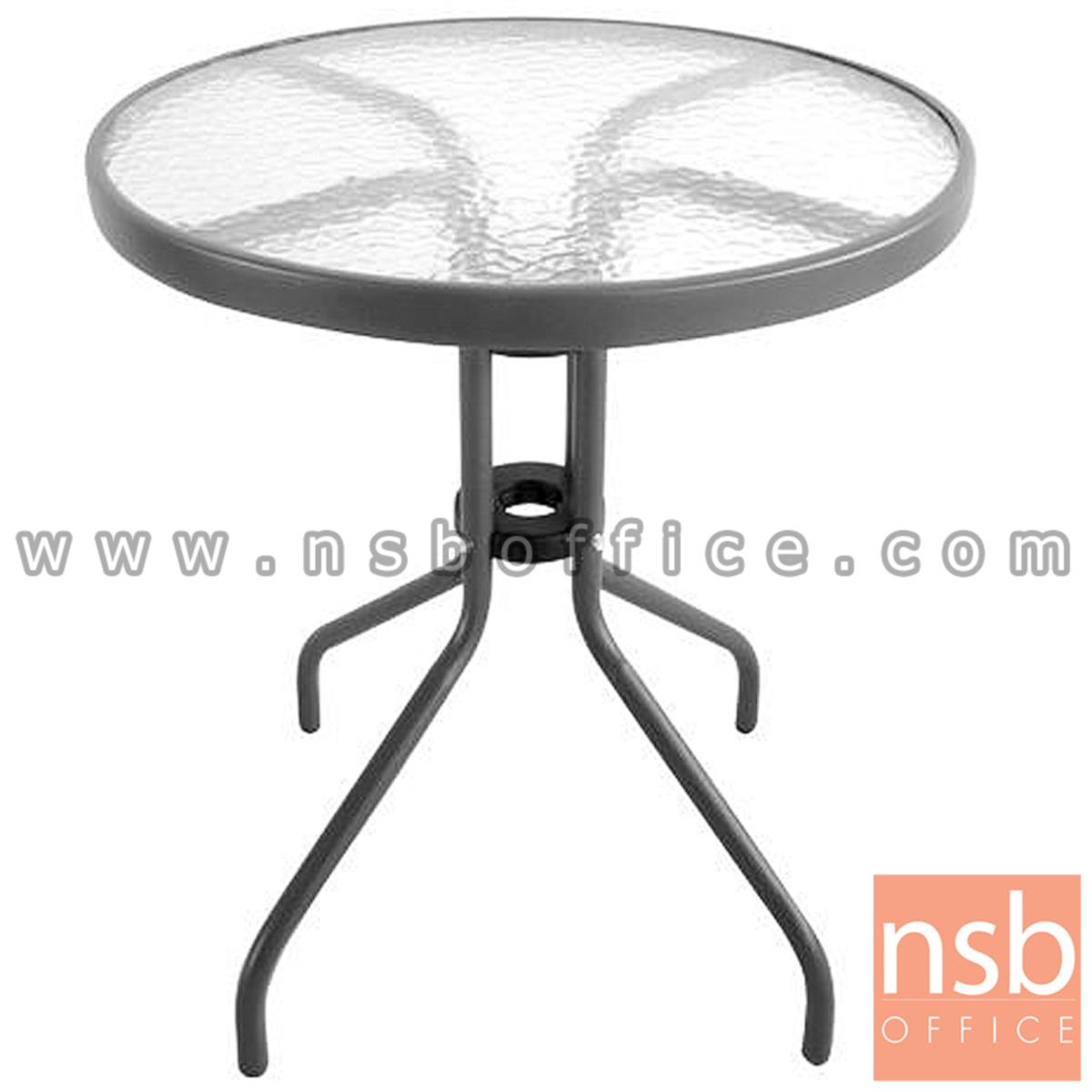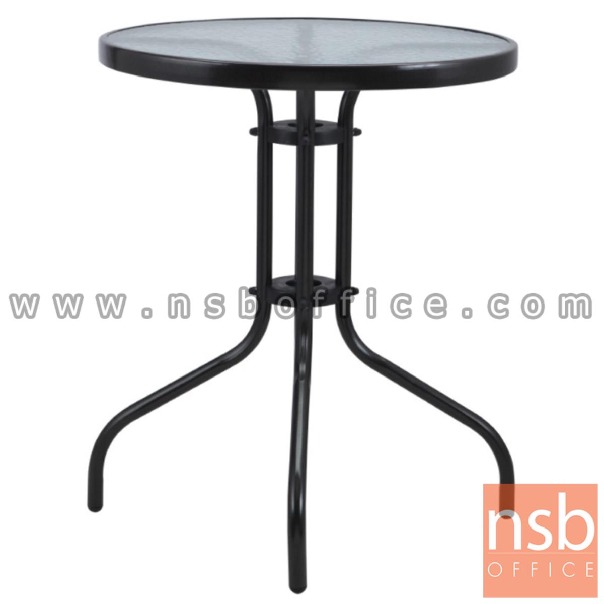 A09A058: โต๊ะสนามหน้ากลมกระจกฝ้า รุ่น Hourglass (อาวร์กลาส) ขนาด 60W* 60D* 70H cm. โครงเหล็กพ่นดำ