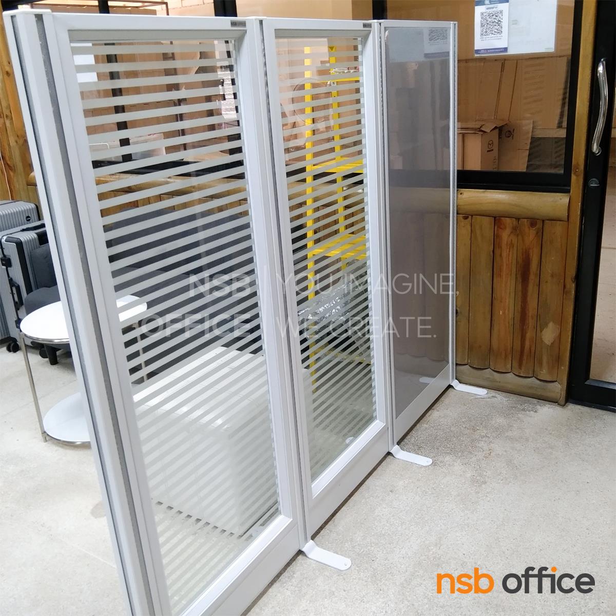 P01A030: พาร์ทิชั่นแบบกระจกขัดลายล้วนทั้งแผง รุ่น P-01-NSB สูง 150 ซม. พร้อมเสาเริ่ม มีกล่องร้อยสายไฟ