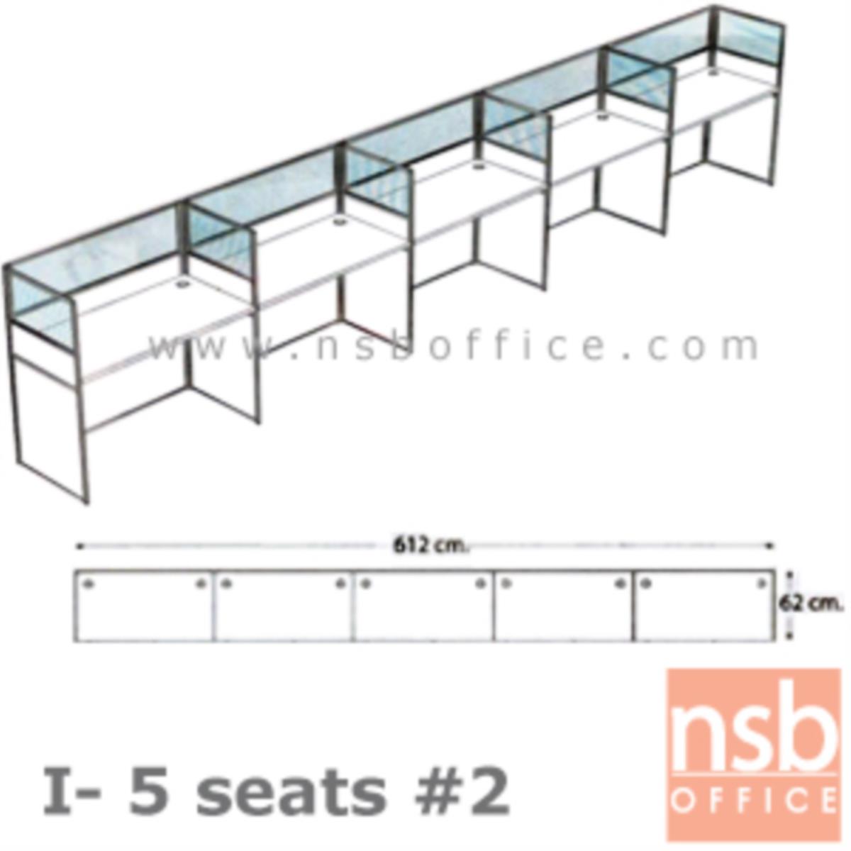 A04A088: ชุดโต๊ะทำงานกลุ่ม 5 ที่นั่ง ขนาดรวม 612W*62D cm. พร้อมพาร์ทิชั่นครึ่งกระจกขัดลาย