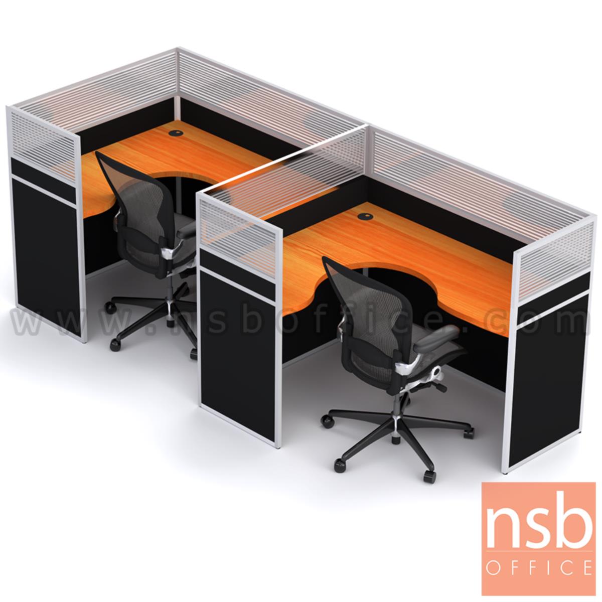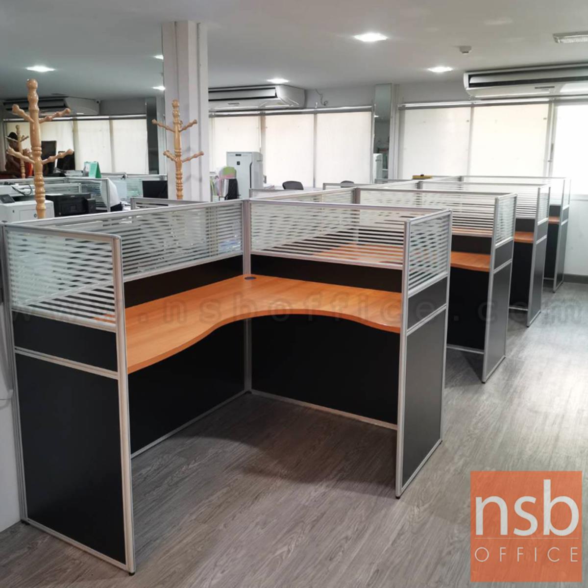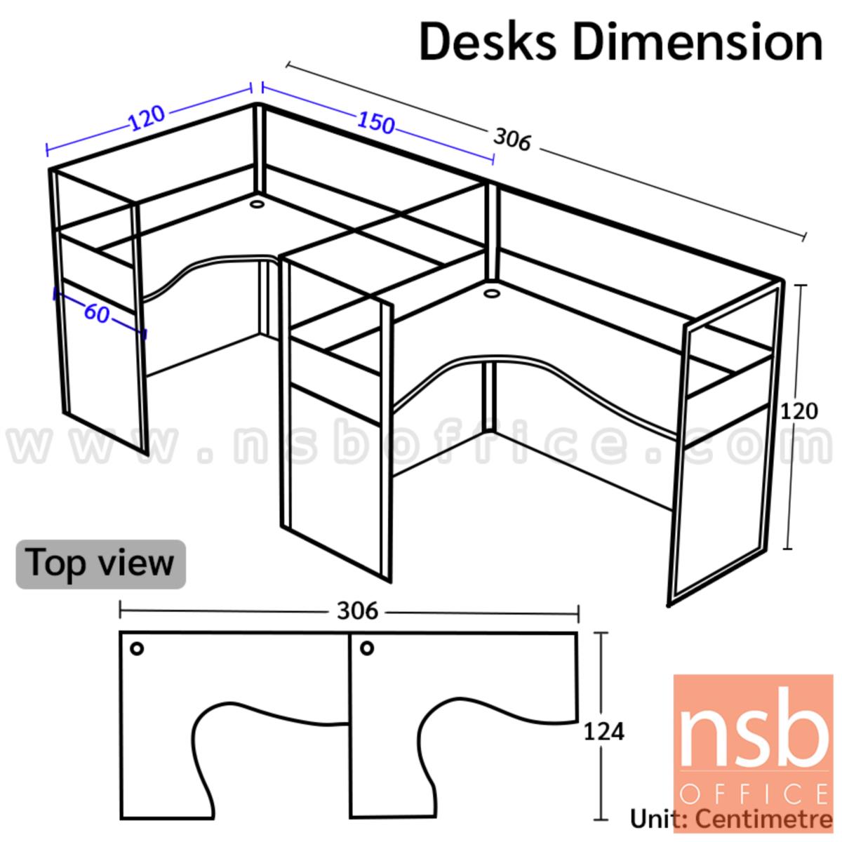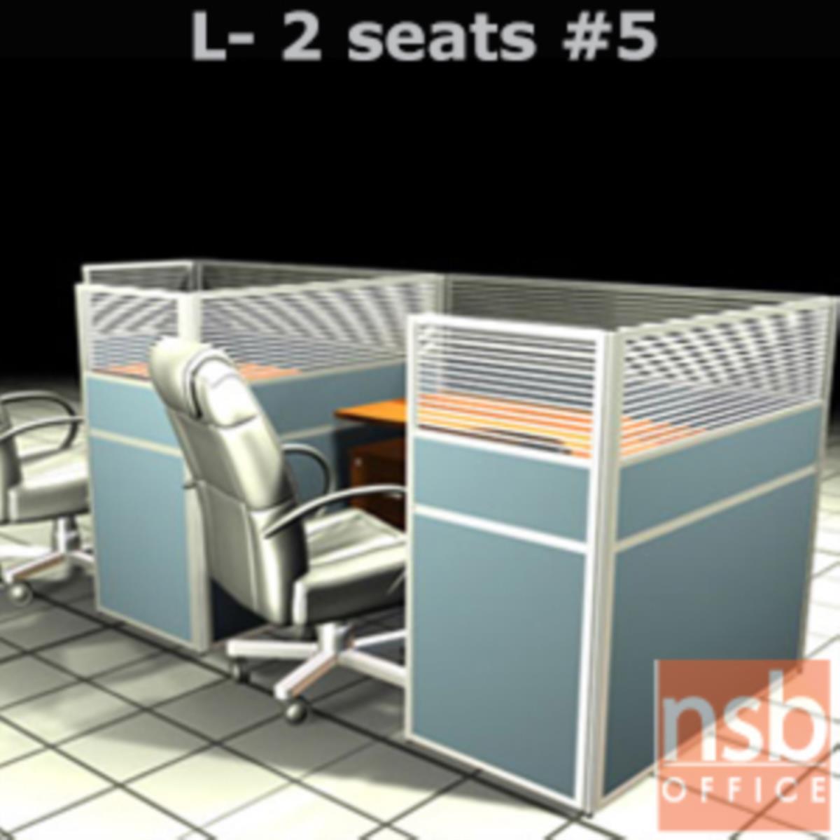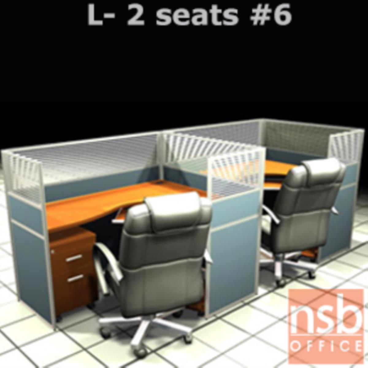 A04A105: ชุดโต๊ะทำงานกลุ่มตัวแอล 2 ที่นั่ง ขนาดรวม 306W*124D cm. พร้อมพาร์ทิชั่นครึ่งกระจกขัดลาย