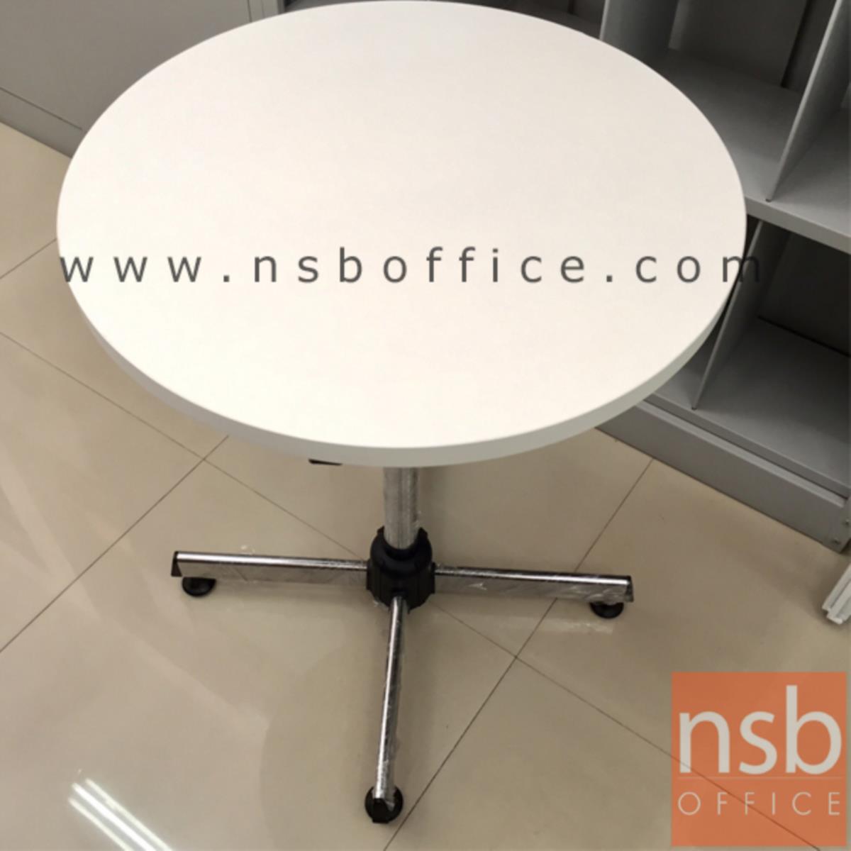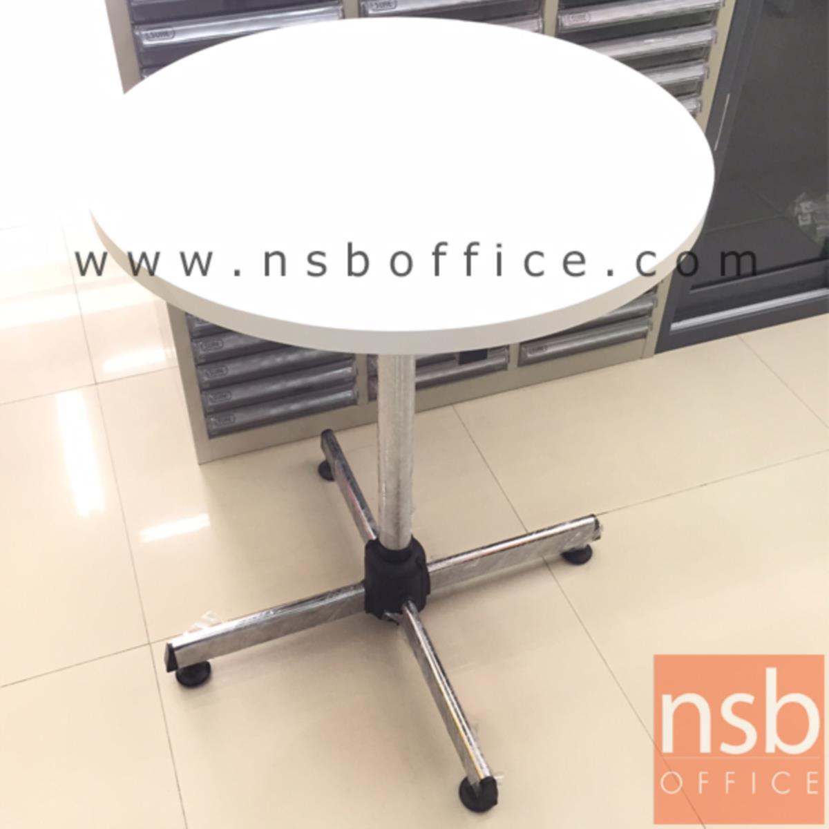 A07A037: โต๊ะหน้าเมลามีน 25 มม. รุ่น Tales (เทลส์) ขนาด 60Di, 75Di cm. ขาเหล็ก 4 แฉกโครเมี่ยม